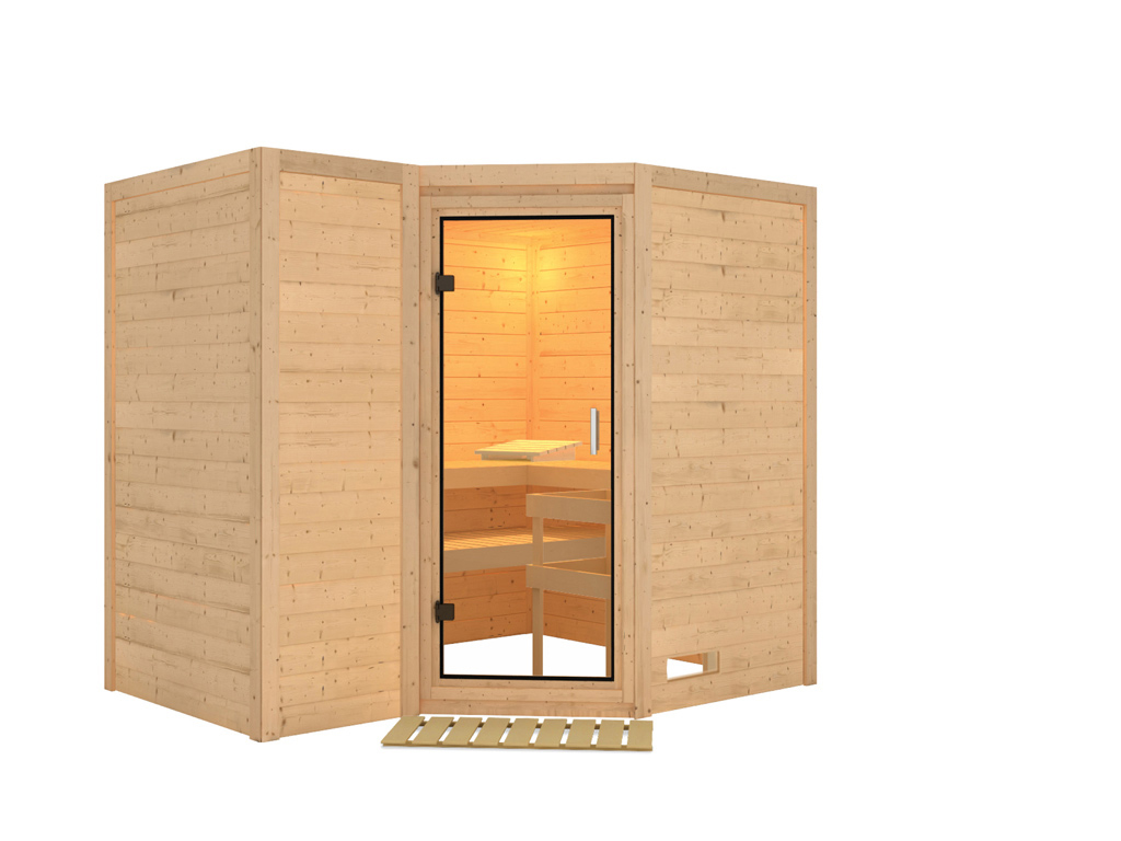 Karibu binnensauna Betty spaarset in massief houten constructie voor 2-3 personen inclusief 9 kW saunakachel en bedieningsunit Fins