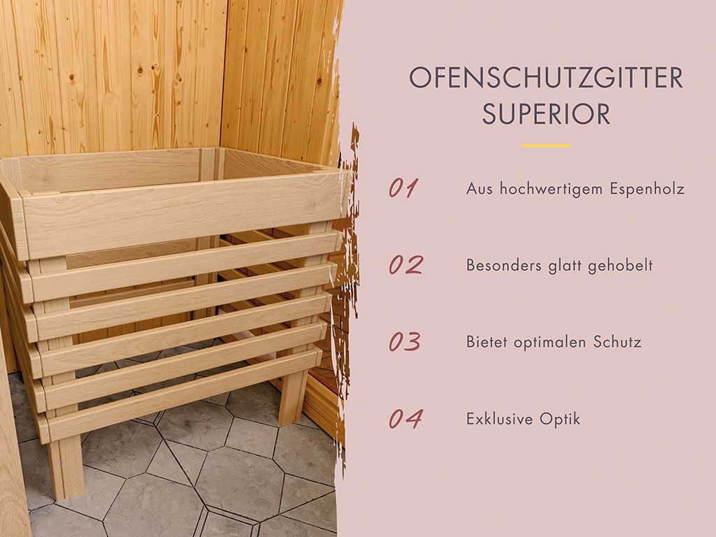 Standaard zonder oven. Een bijpassende saunaoven is inbegrepen in onze voordelige sets.