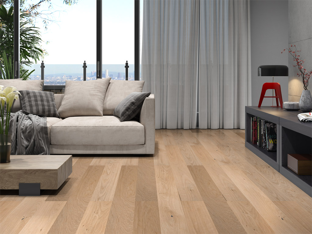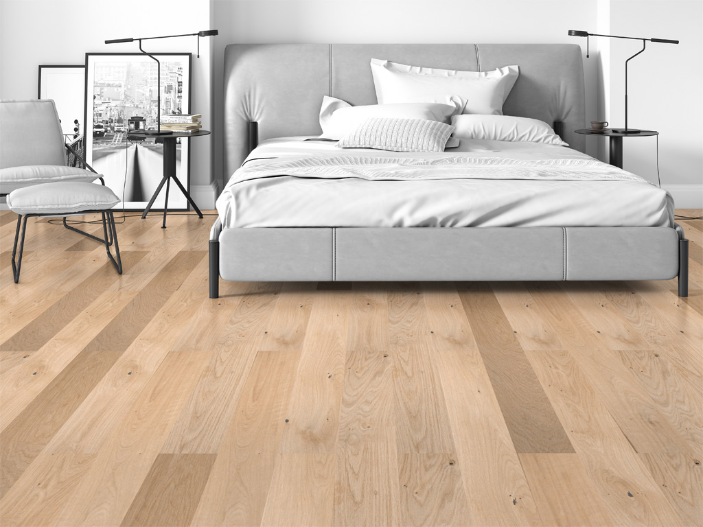 Deze edele eikenhouten vloer geeft elke ruimte een meerwaarde en geeft je huis een absoluut individueel tintje! De hoge dichtheid van eikenhout heeft ook economische voordelen, omdat het warmte geleidt en zorgt voor warme voeten. De 4-zijdige V-voeg van de plank benadrukt het rustieke landhuis karakter. De sortering Naturel (N II) is een rustige sortering met kleine knoesten en vrijwel zonder spinthout. Natuurlijke kleurverschillen zijn bij deze sortering toegestaan en ondersteunen de natuurlijke uitstraling van de planken.