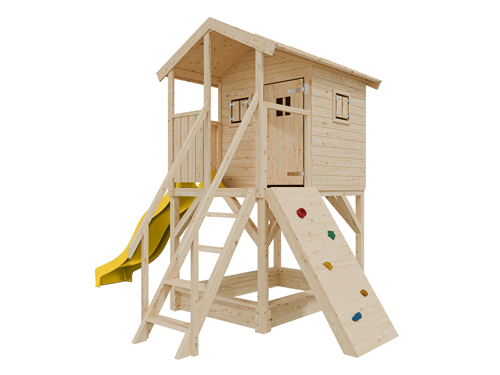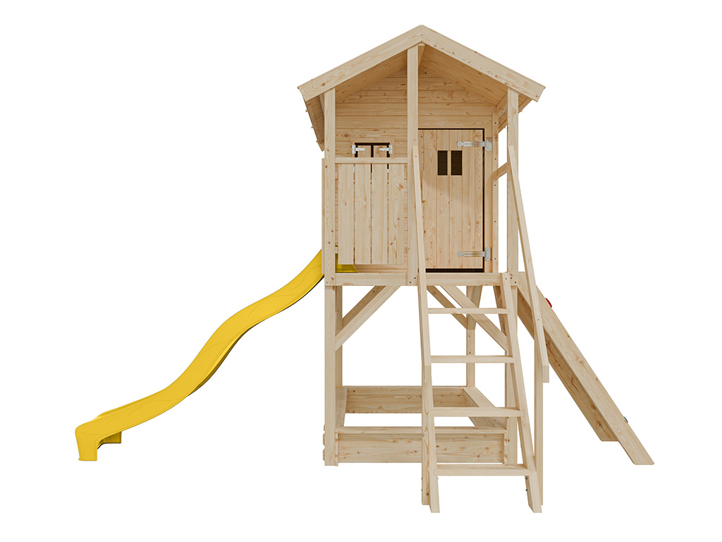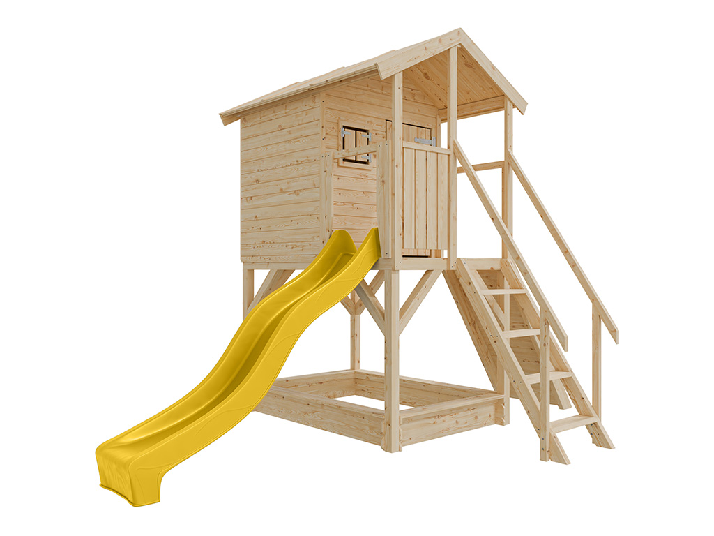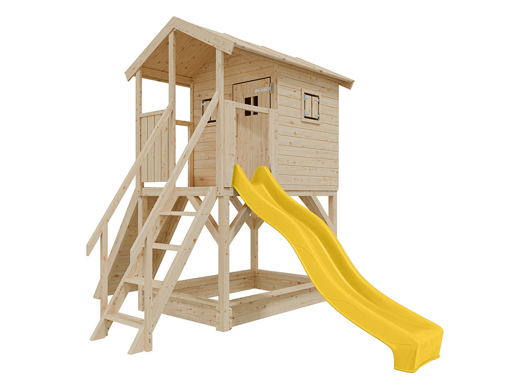 Onbehandeld speelhuisje op palen Nele incl. gele glijbaan