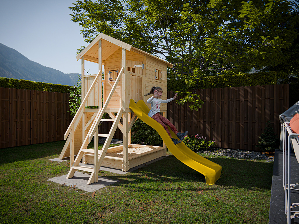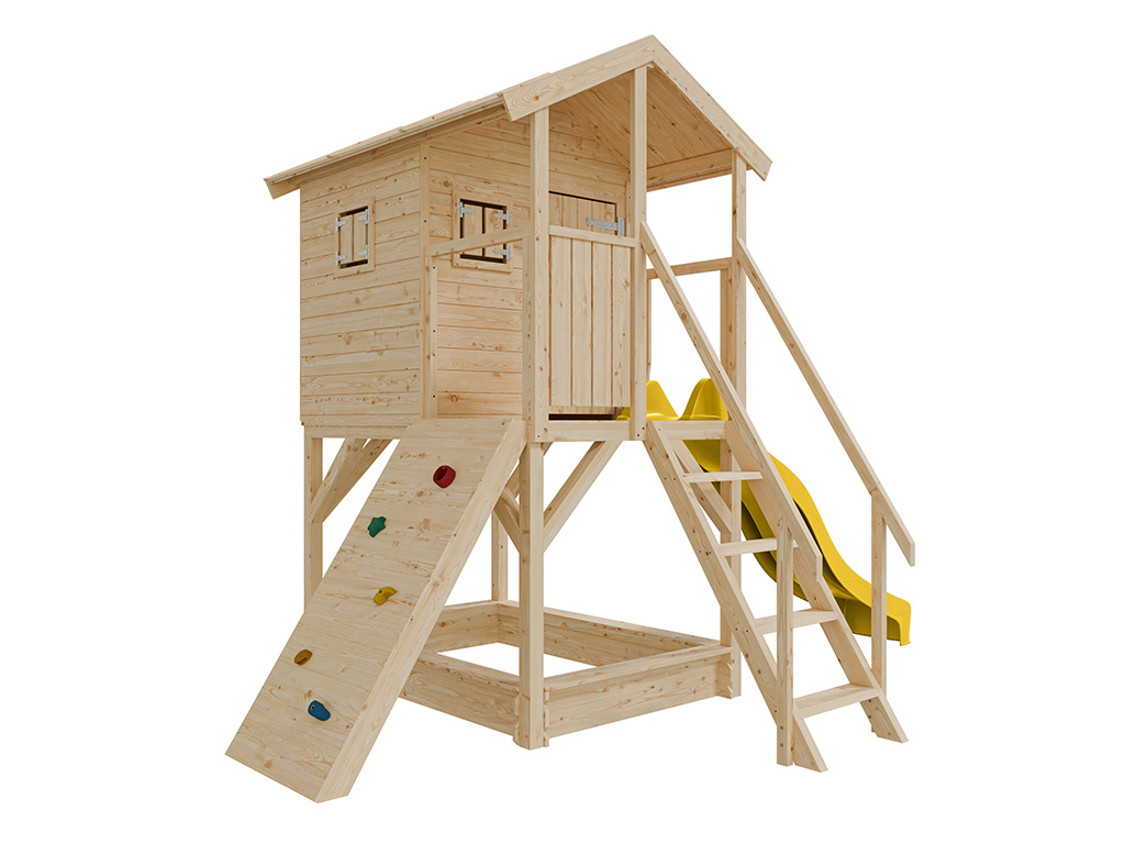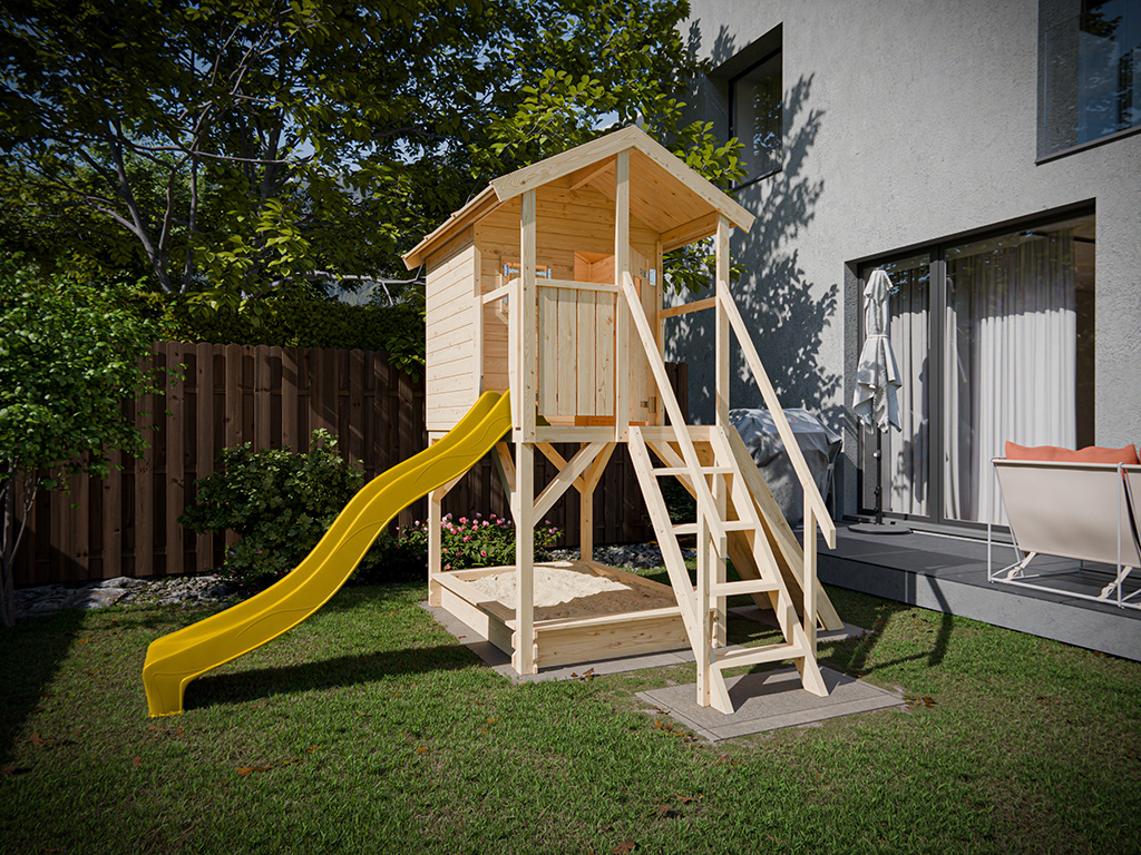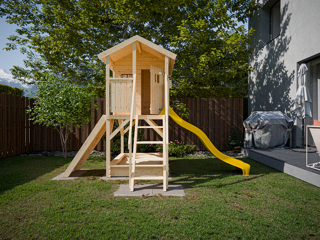 Onbehandeld speelhuisje op palen Nele incl. gele glijbaan
