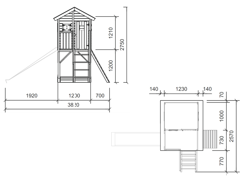 Door de voorgemonteerde elementen is het speelhuisje op palen snel en eenvoudig te monteren. - Met glijbaan