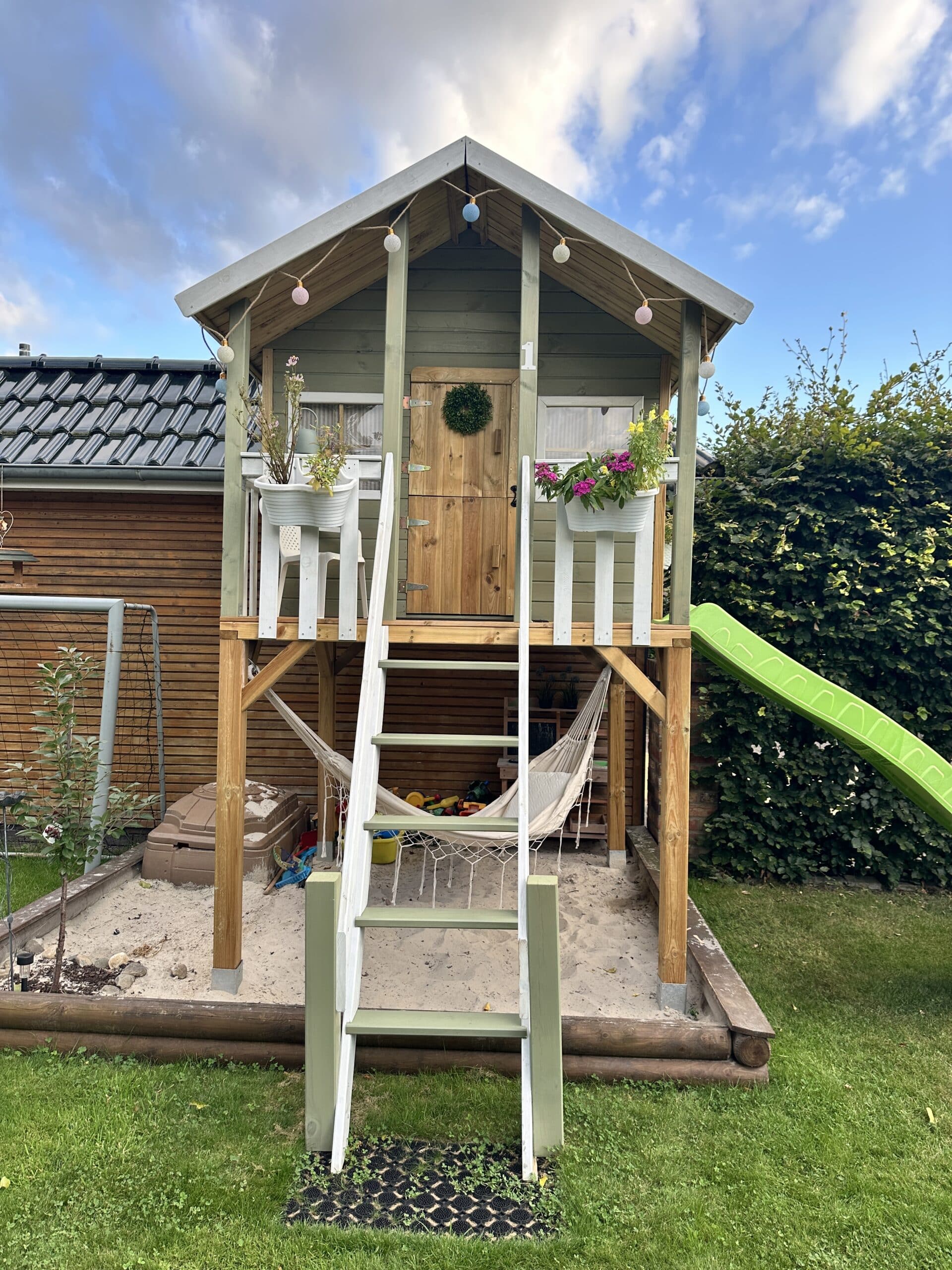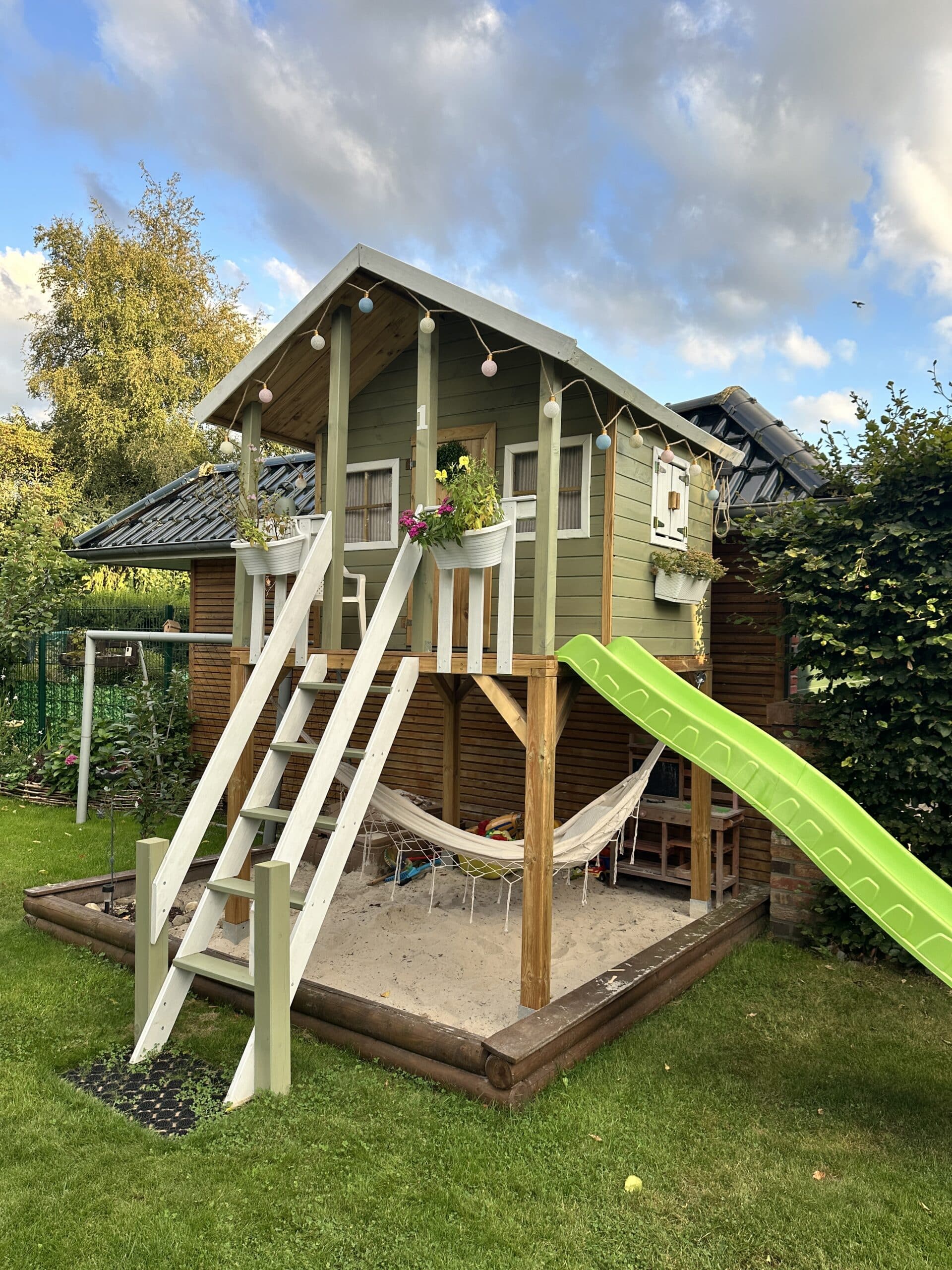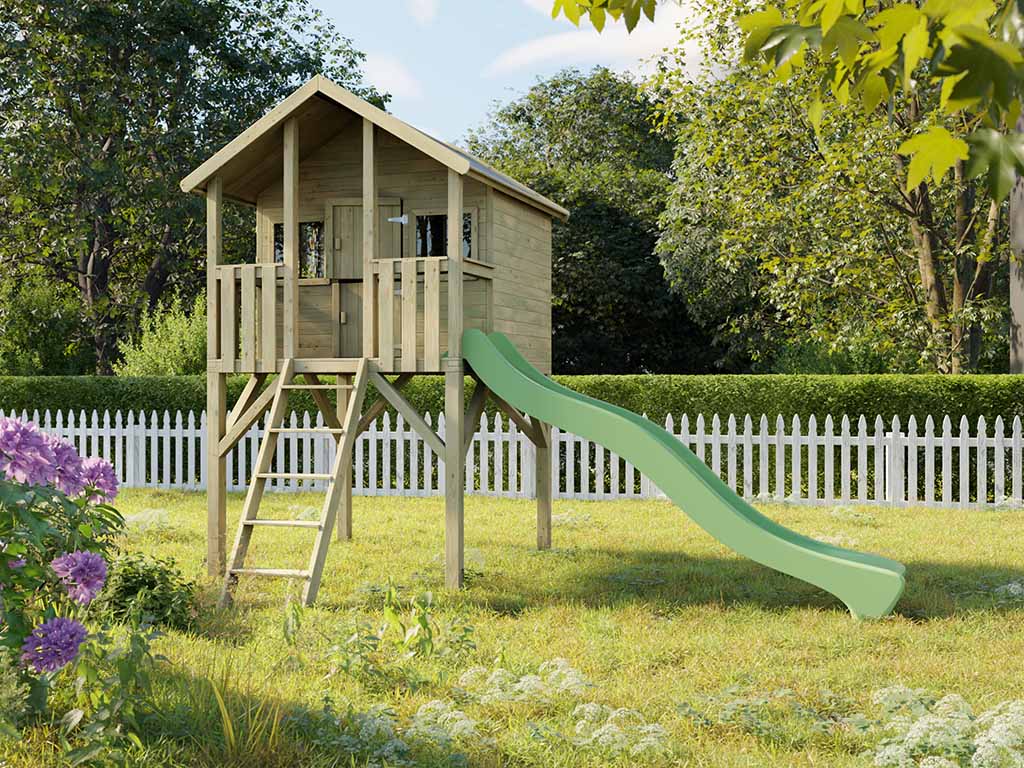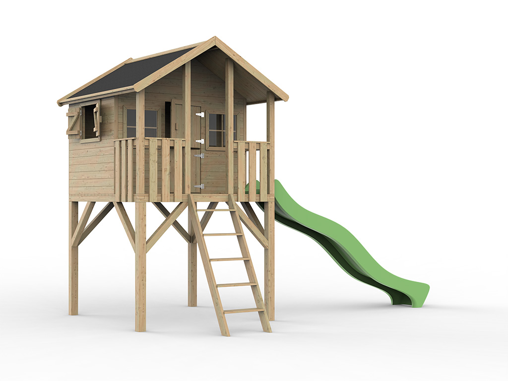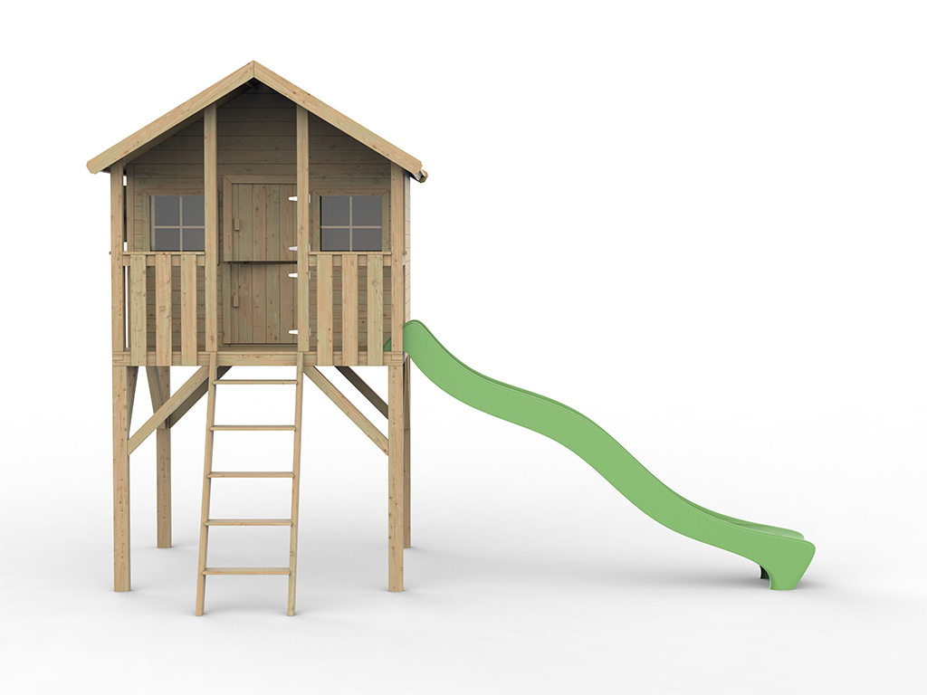 Geïmpregneerd houten speelhuisje op palen "Big House" incl. groene glijbaan