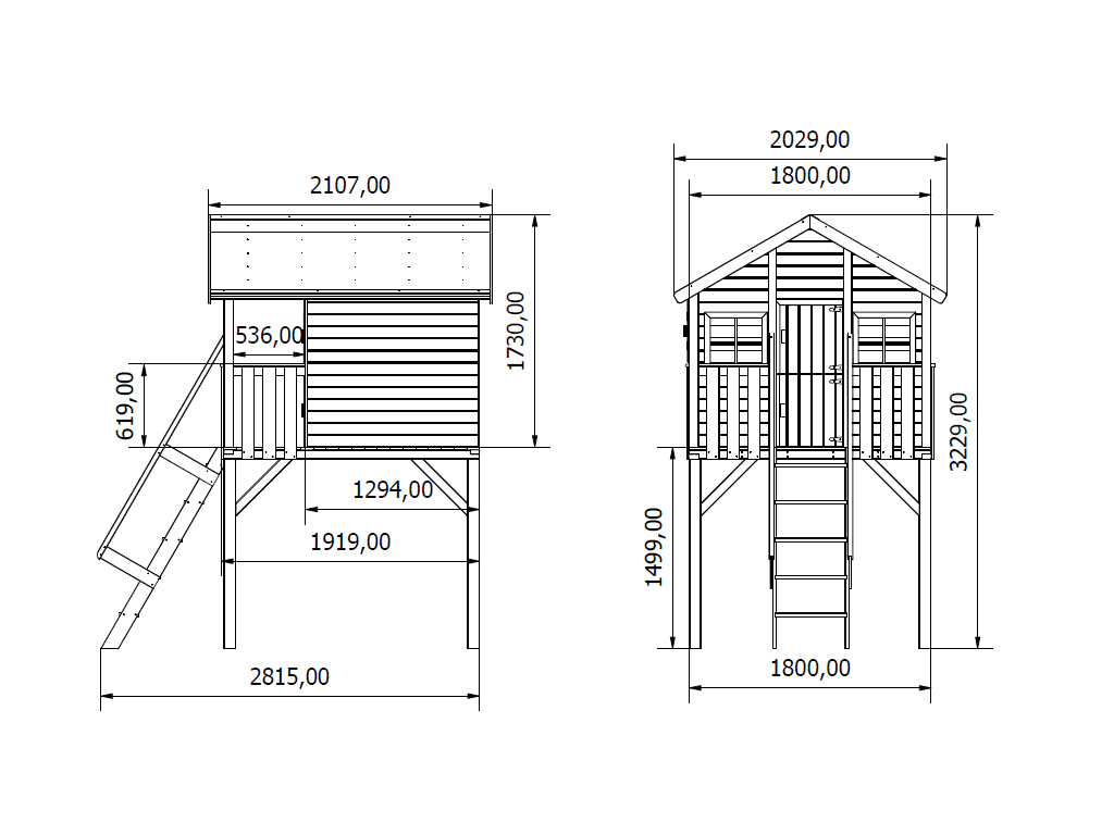 | Leveringsomvang: | Huis op palen Big House, ladder, luiken, gedetailleerde montagehandleiding, zandbak, glijbaan groen |