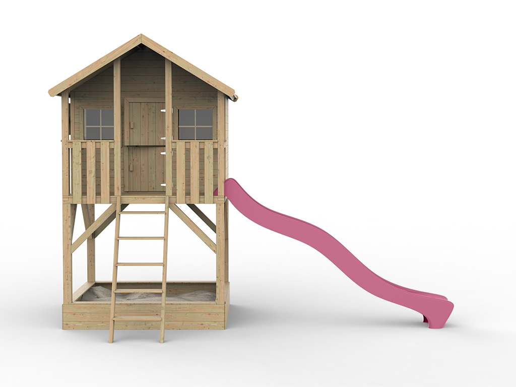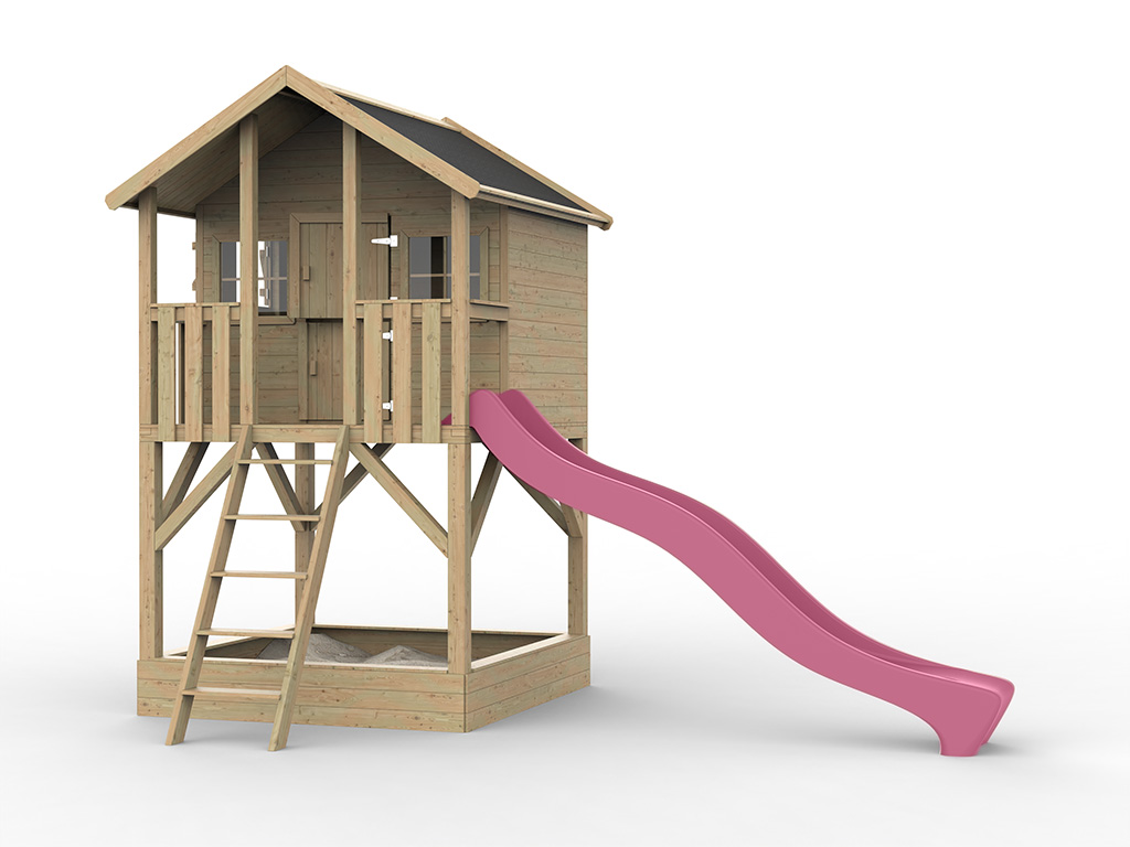 Speelhuisje op palen "Big House" van geïmpregneerd hout met zandbak incl. roze glijbaan