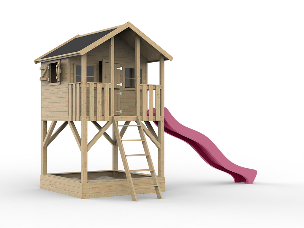 | Leveringsomvang: | Huis op palen Big House, ladder, luiken, gedetailleerde montagehandleiding, zandbak, glijbaan violet |