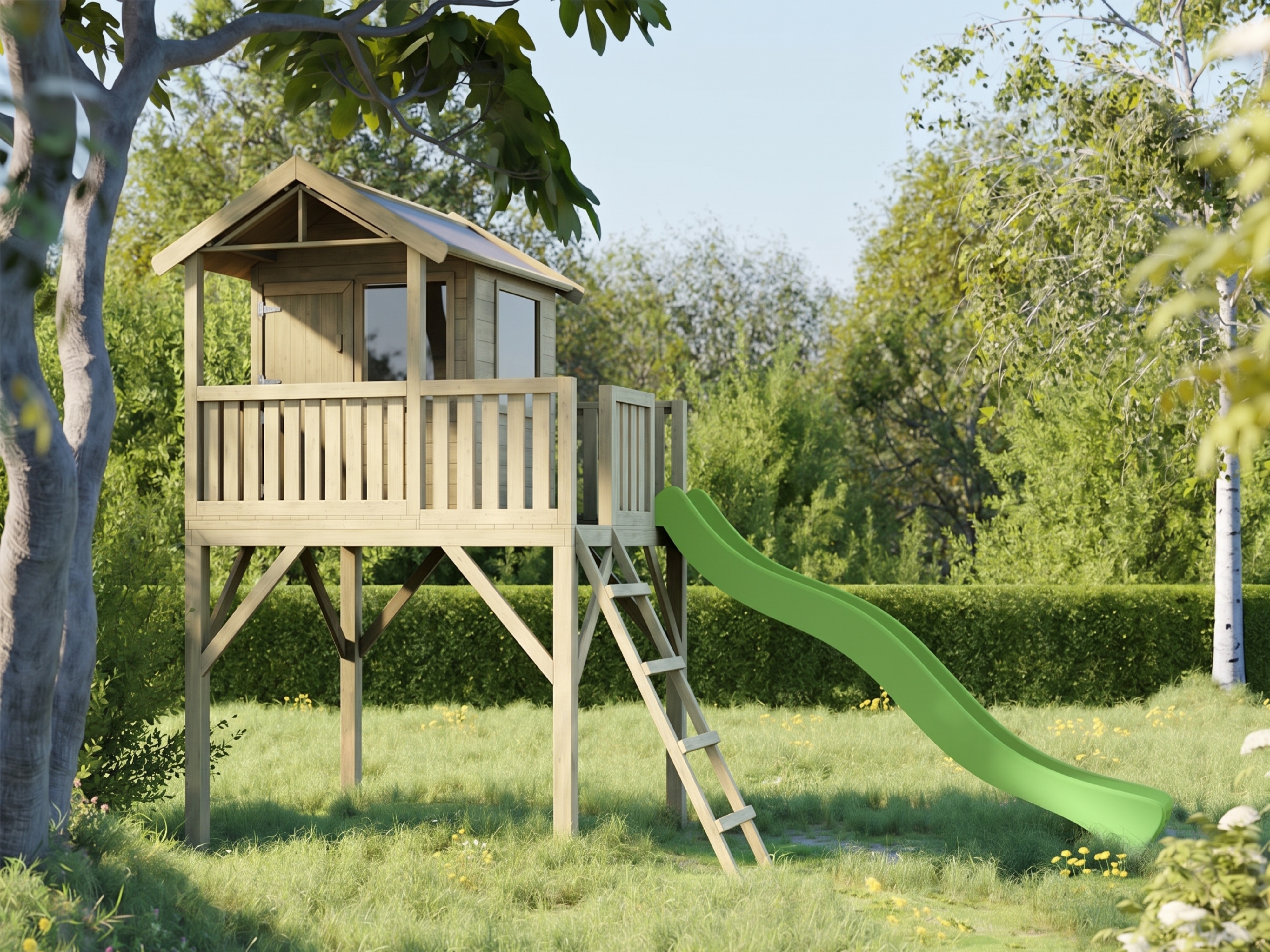 Geïmpregneerd speelhuisje op palen Funny XXL incl. groene glijbaan