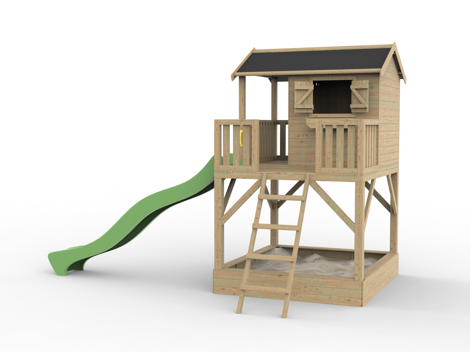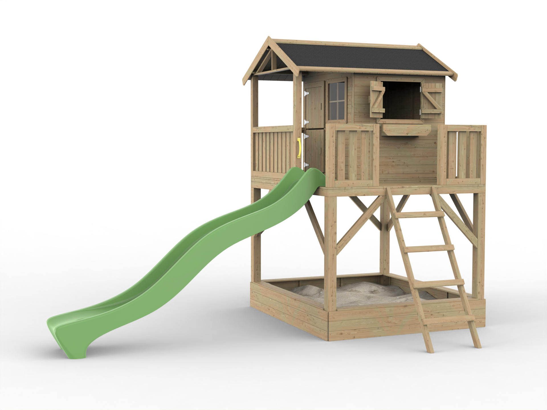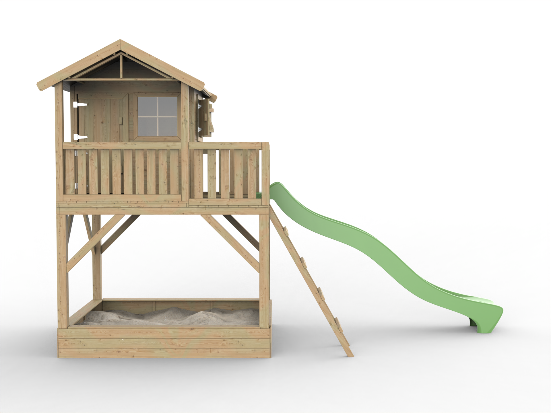 Geïmpregneerd speelhuisje op palen Funny XXL met zandbak incl. groene glijbaan