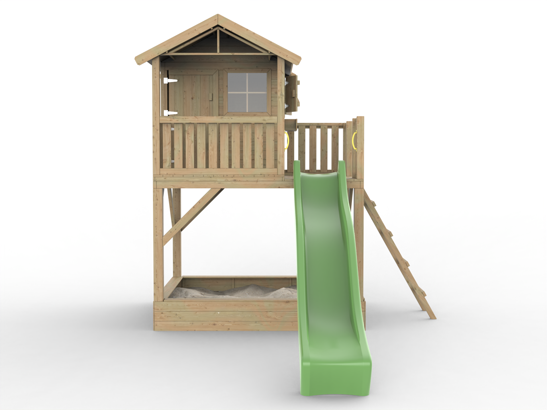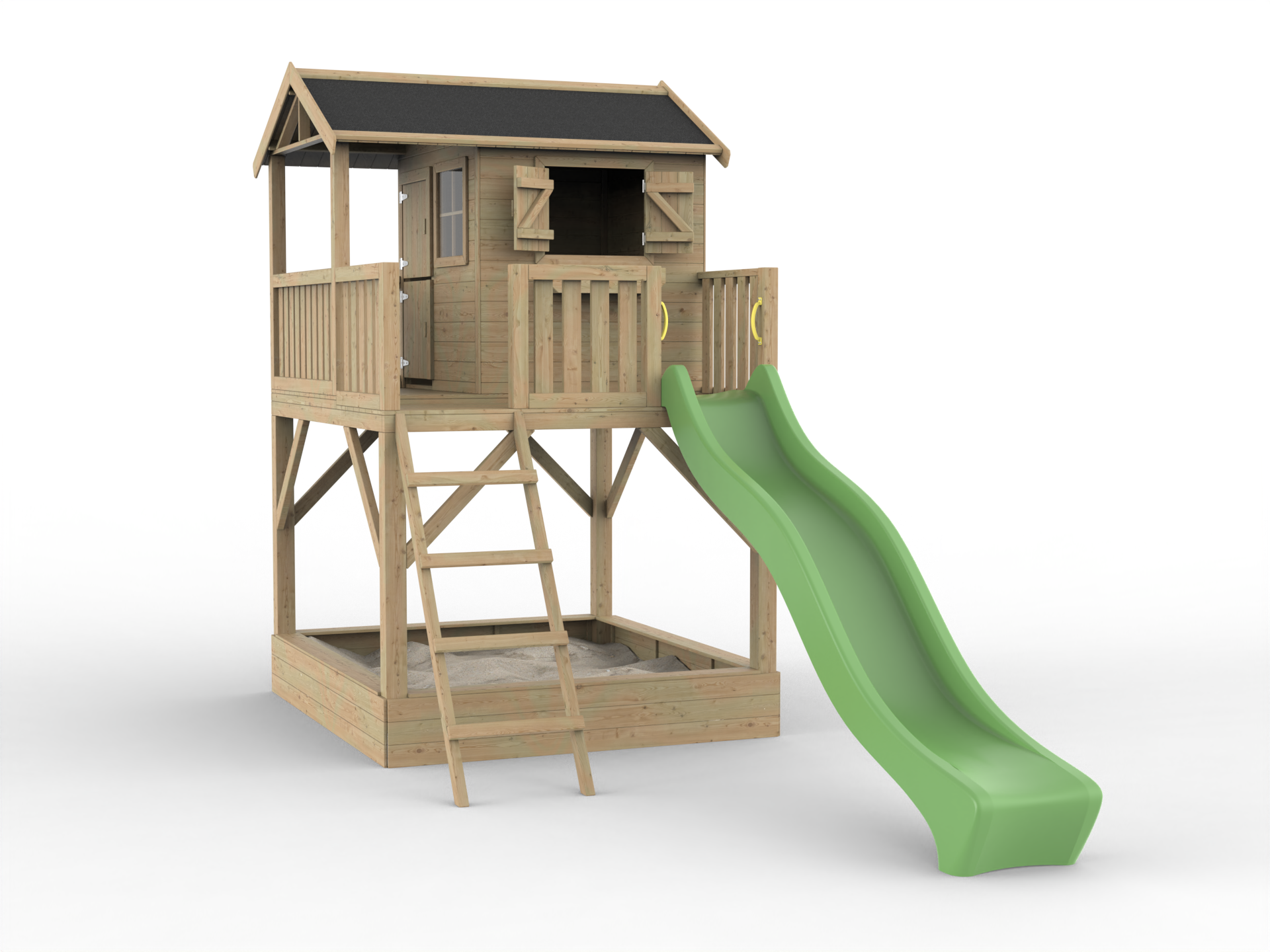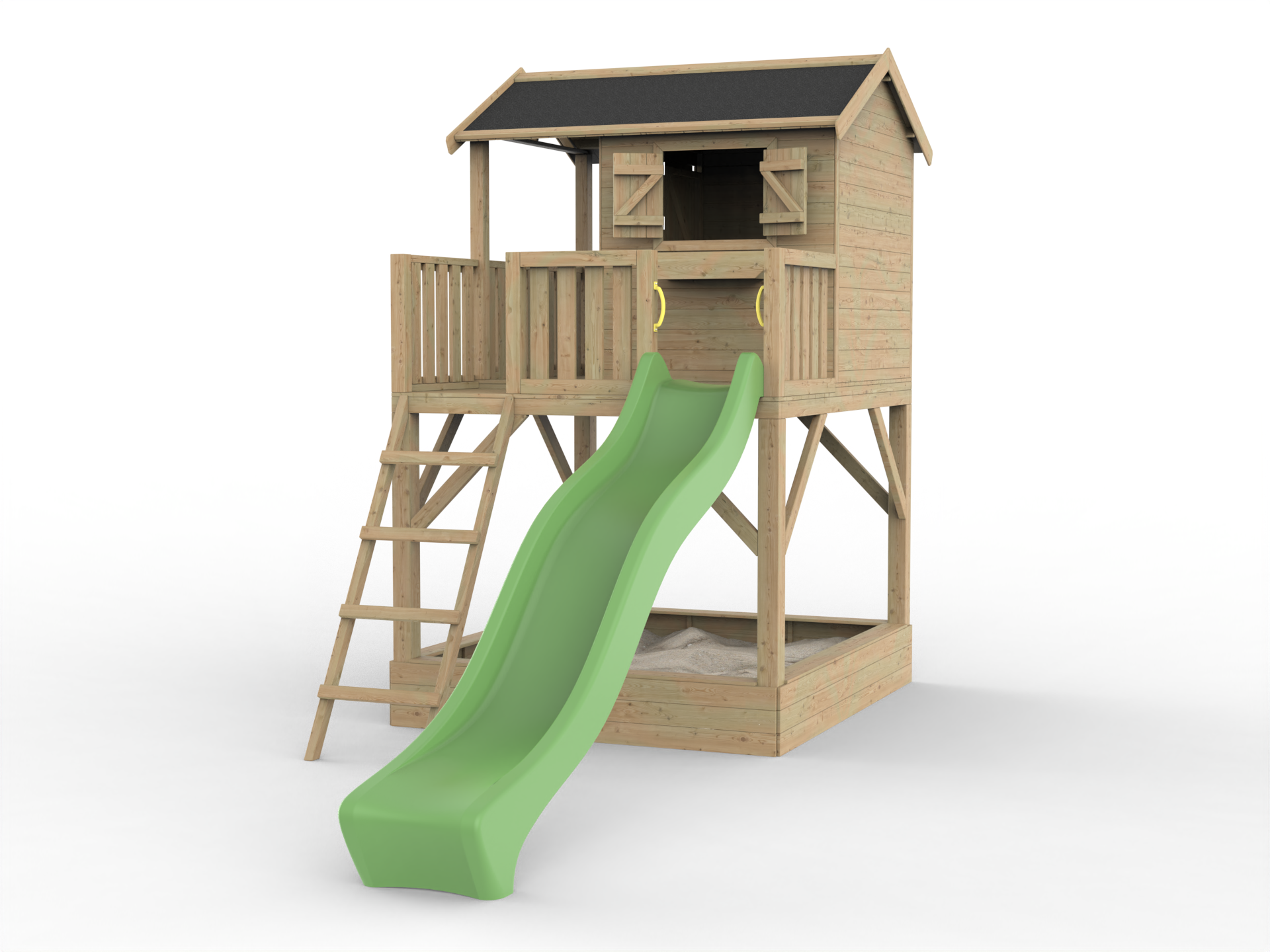 Geïmpregneerd speelhuisje op palen Funny XXL met zandbak incl. groene glijbaan