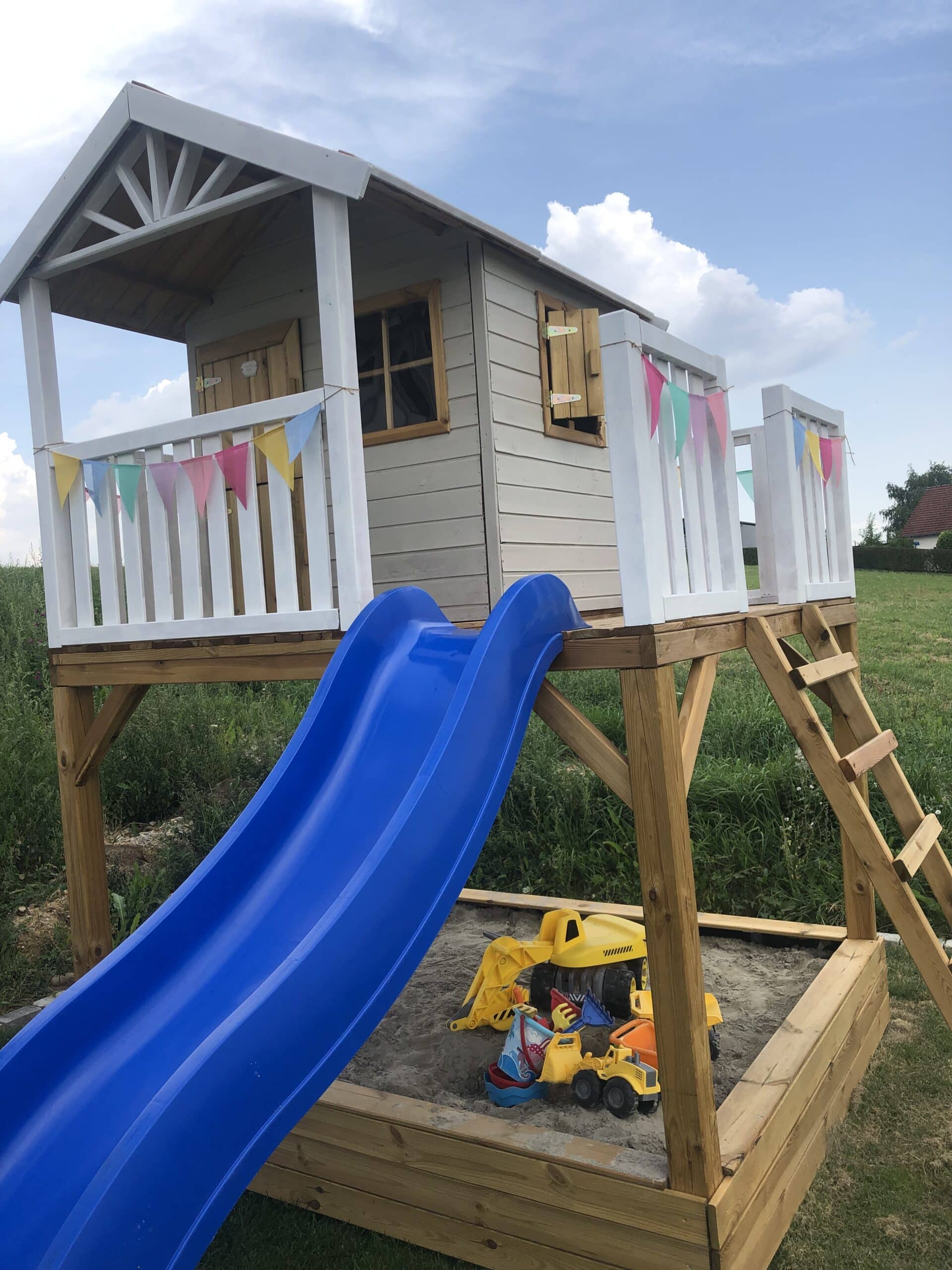 De constructie was een beetje vervelend omdat het speelhuis volledig in al zijn afzonderlijke onderdelen werd gedemonteerd, maar het was zeker te doen! Het materiaal maakt een uiterst solide en zeer stabiele indruk!