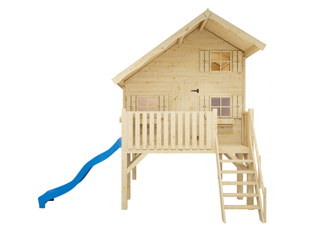 Paalhuis Tom XL 15 mm naturel incl. veranda, Palen en glijbaan blauw