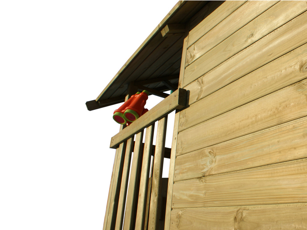 Het speelhuisje is gemaakt van geïmpregneerd grenenhout profielhout en is daardoor bijzonder weerbestendig. De 8,8 x 8,8 cm dikke palen zorgen voor een zeer stabiele constructie. Voor extra veiligheid adviseren wij het speeltoestel met grondankers in de grond te verankeren. - Eenvoudige en snelle montage