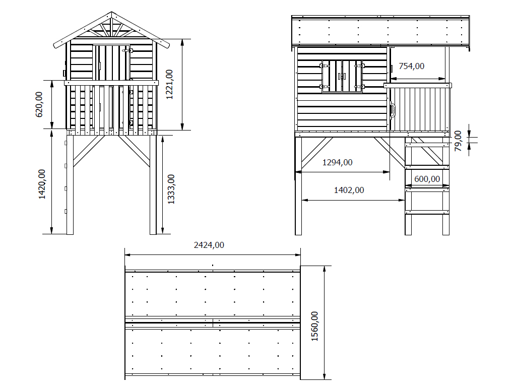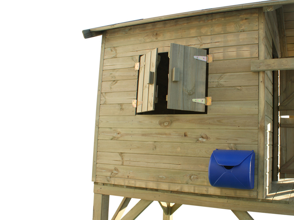 | Leveringsomvang: | Huis op palen Boomhut, ladder, luiken, veranda, handvat, gedetailleerde montagehandleiding, glijbaan groen |