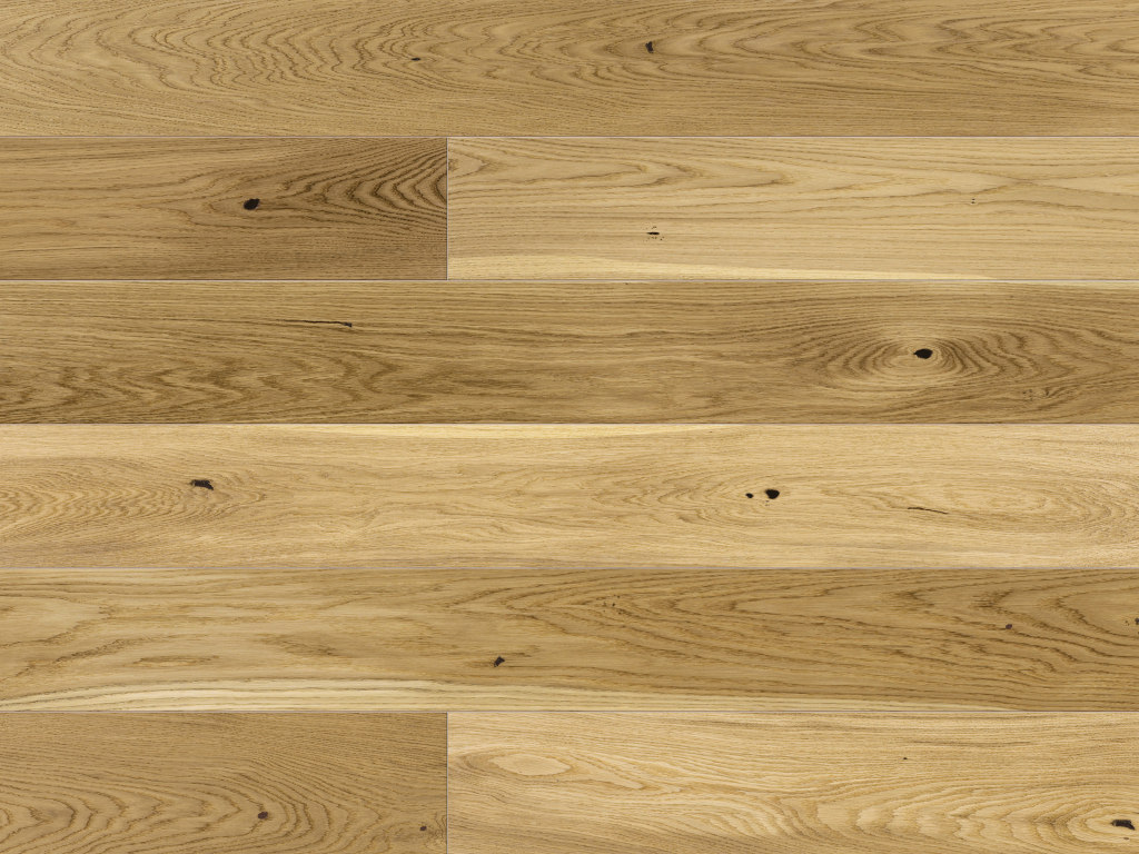 Deze verfijnde eikenvloer verfraait iedere ruimte en geeft je interieur een absoluut uniek karakter. De hoge dichtheid van eiken is ook economisch aantrekkelijk, omdat het warmte geleidt en zo voor aangenaam warme voeten zorgt. Landhuisdelen zijn perfect voor iedereen die het authentieke houtkarakter van de vloer wil benadrukken – voor een rustieke uitstraling. De rondom 4-zijdige V-groef van de plank accentueert het landelijke, robuuste karakter.Het parket heeft een harmonische nerftekening: het hout is vrij van scheuren en noesten.