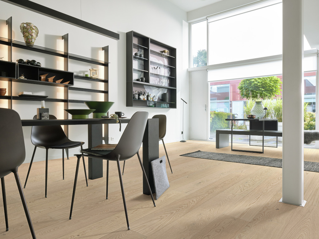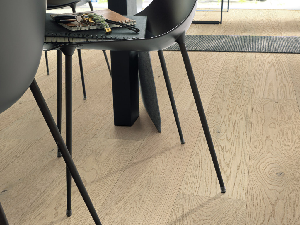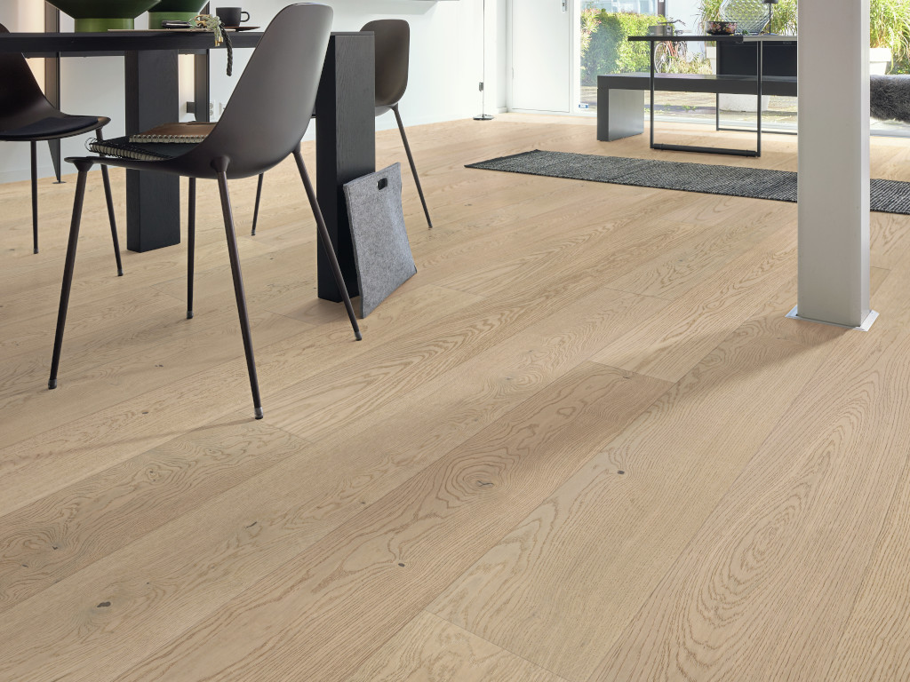 De geborstelde houtstructuur zet de houtnerf mooi in de verf en creëert extra diepte in het oppervlak. De toplaag van de planken is mat gelakt. Dit zorgt voor een bijzonder lange levensduur en maakt de vloer makkelijk in het onderhoud.