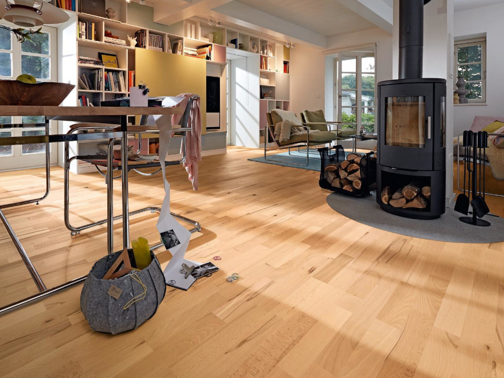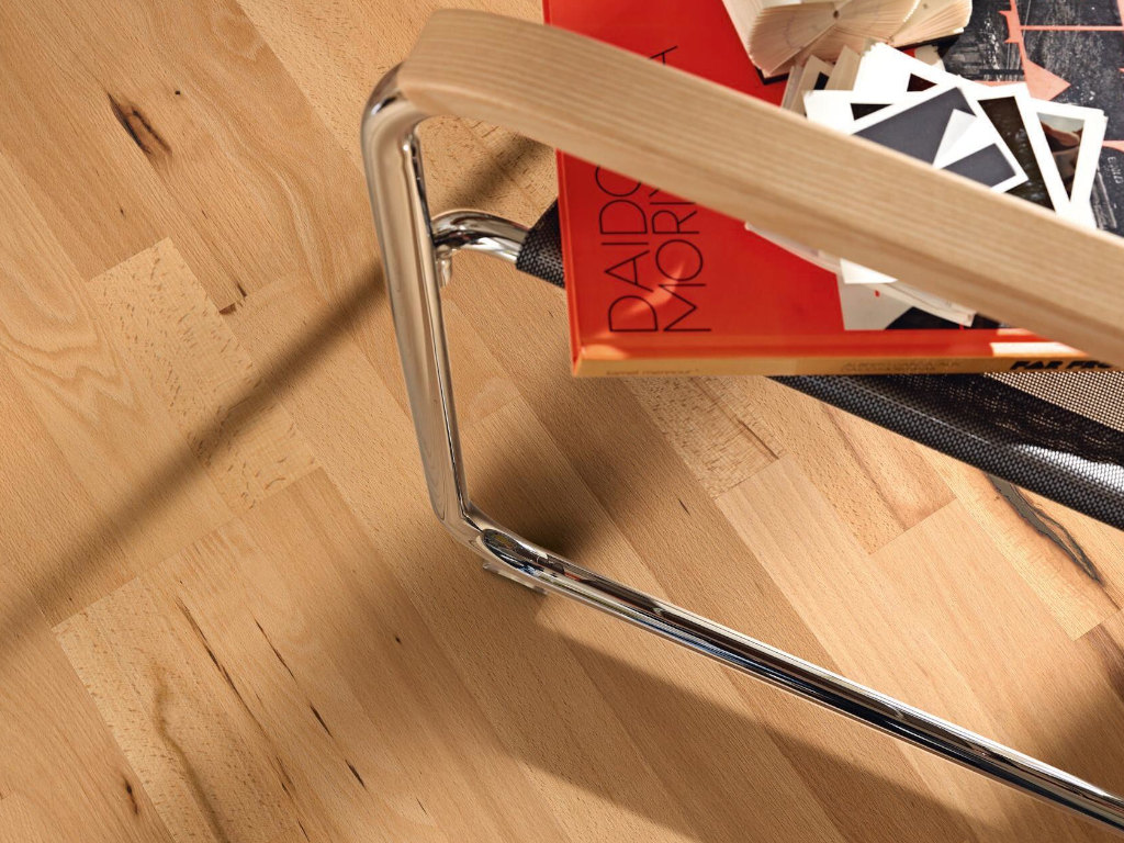 Deze vloer is gemaakt van het edele hout van de beuk, een van de meest robuuste hardhoutsoorten. Dankzij de klassiek heldere uitstraling past hij perfect bij vrijwel alle gangbare interieurstijlen. Beukenhout is hard, slijtvast en daardoor ideaal voor ruimtes die intensief worden gebruikt.