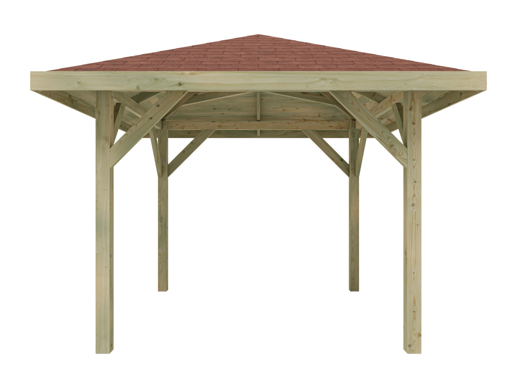 WOODTEX paviljoen tuinhuisje "Tourist" geïmpregneerd incl. bitumen rechthoekige shingles rood