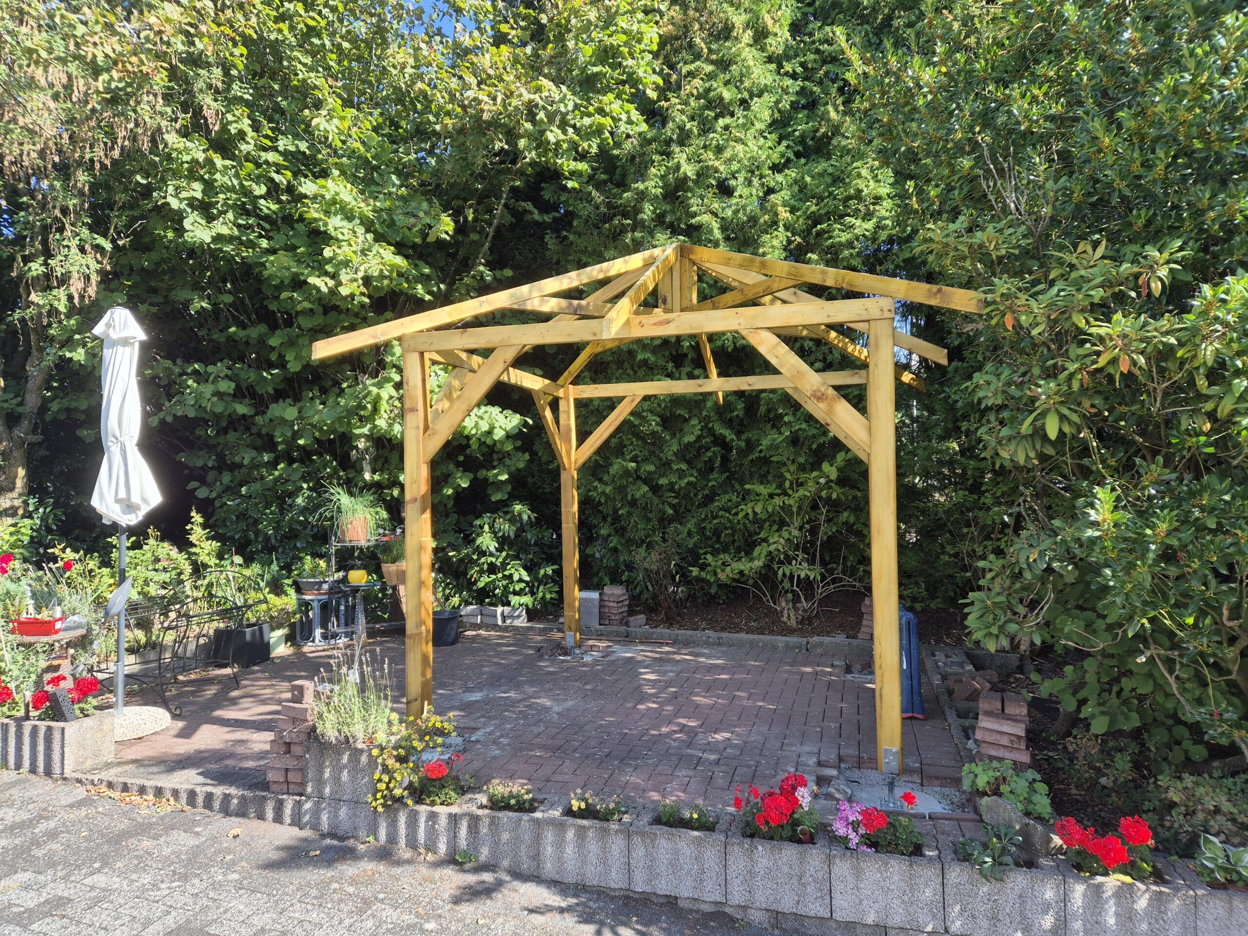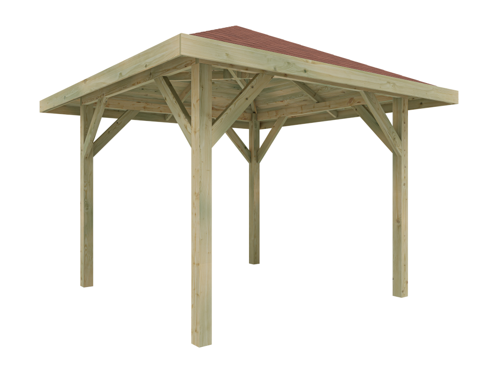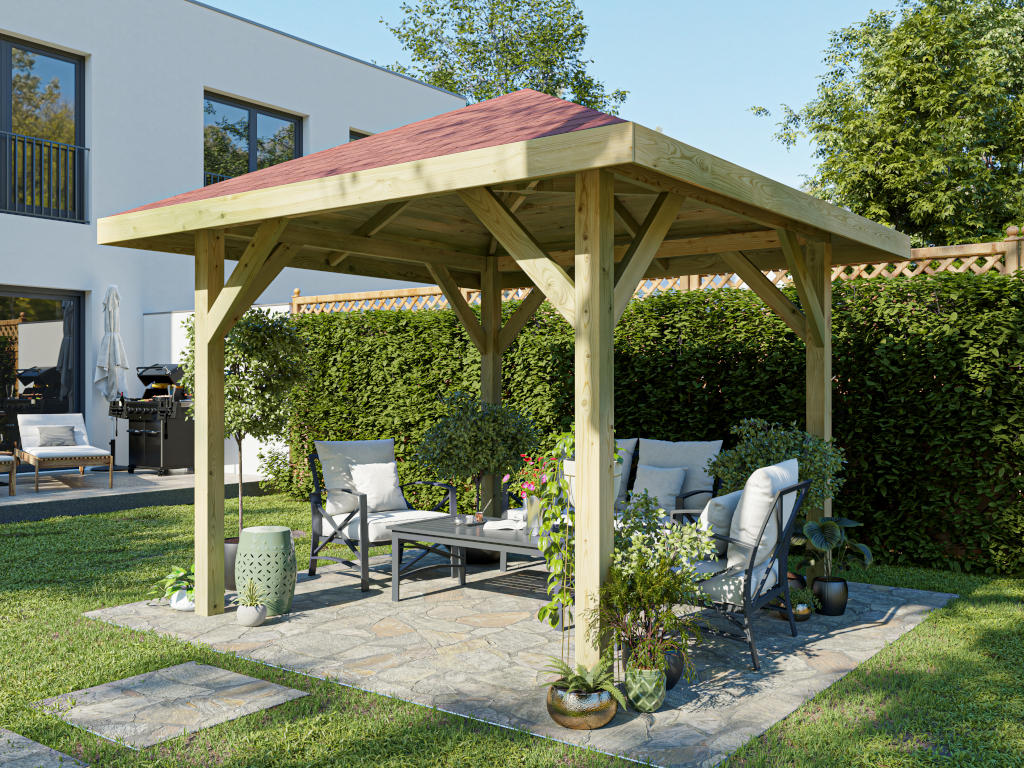 Het paviljoen is gemaakt van stevig dennenhout. Bovendien beschermt de hoogwaardige impregnatie het hout tegen weerinvloeden.