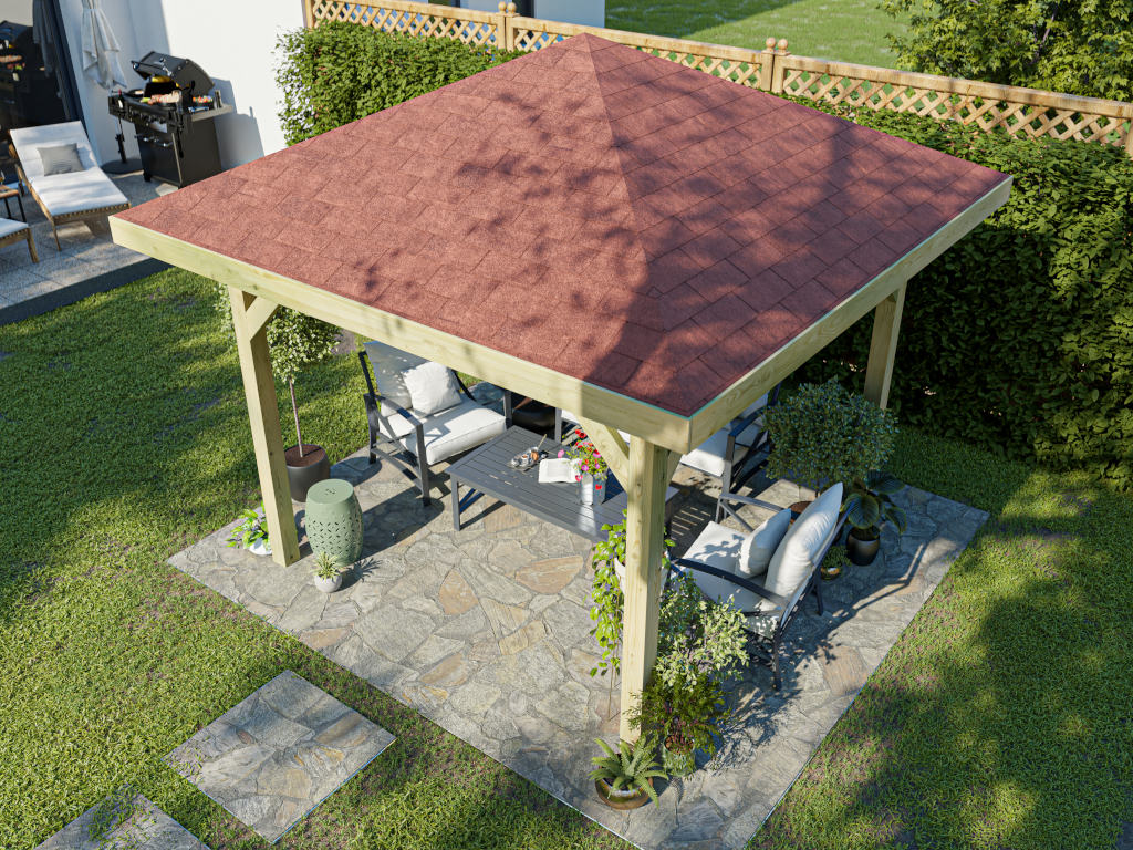 Paviljoen prieel Tourist incl. bitumen rechthoekige shingles rood