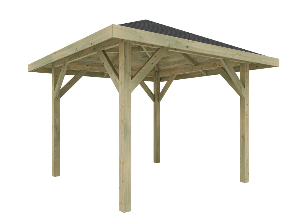 Het paviljoen is gemaakt van stevig dennenhout. Bovendien beschermt de hoogwaardige impregnatie het hout tegen weerinvloeden.