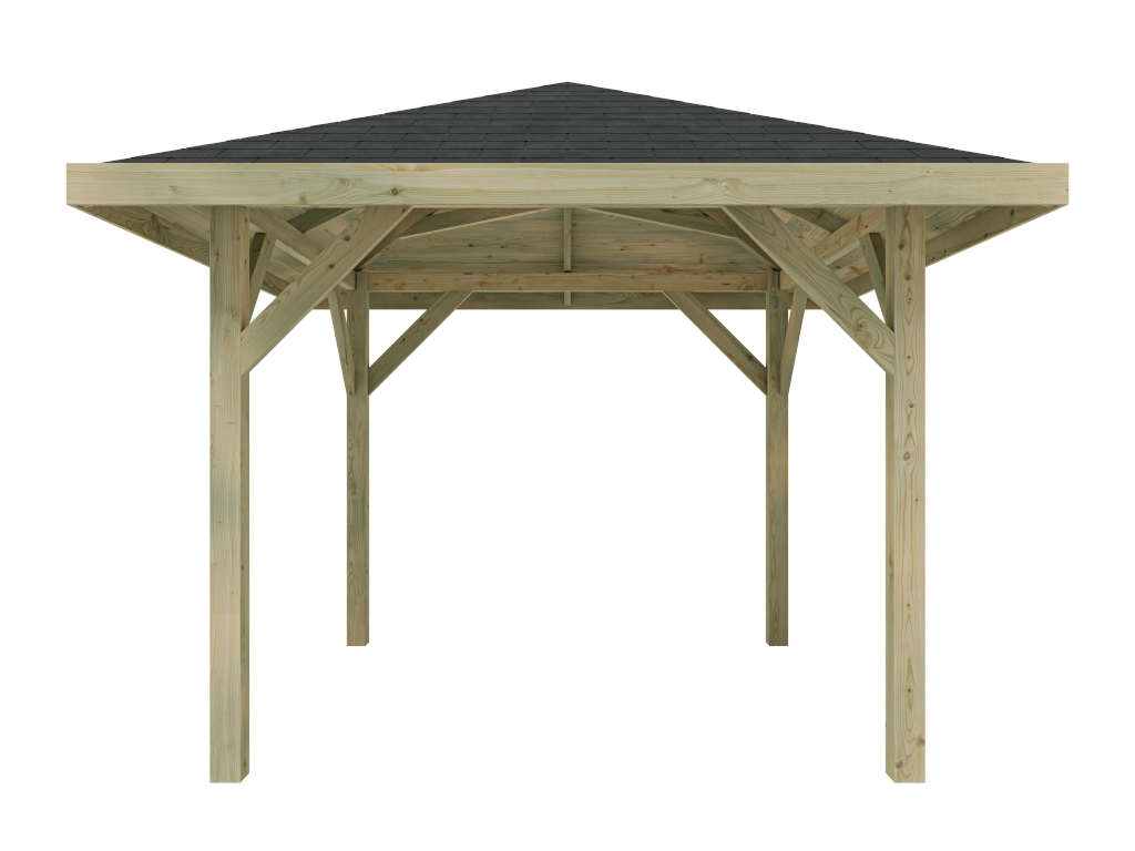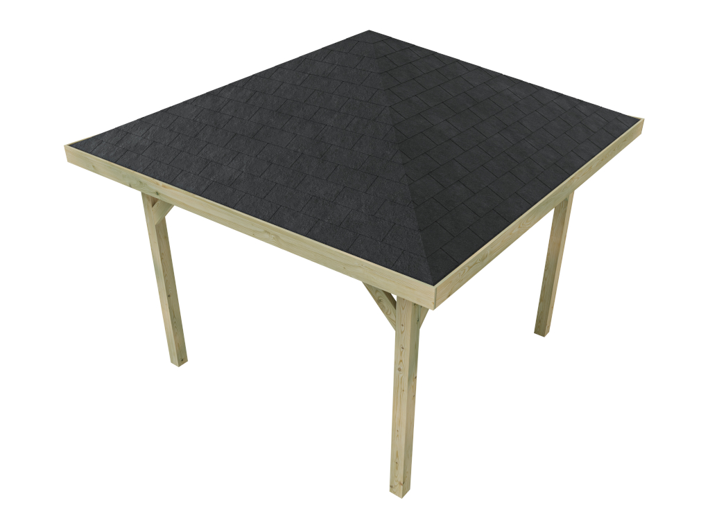 WOODTEX paviljoen tuinhuisje "Tourist" geïmpregneerd incl. zwarte bitumen rechthoekige shingles