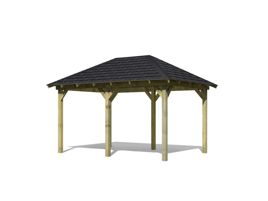 Gezellig 4-hoekig paviljoen uit de Karibu ECO serie om te genieten en te ontspannen. Deze SPARSET bevat ook bijpassende dakshingles.