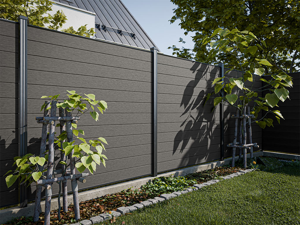 De WPC privacybeschermende schutting overtuigt door zijn stabiliteit en duurzaamheid in modern design - het insteekhek als blikvanger met onverslaanbare prijs-prestatieverhouding.