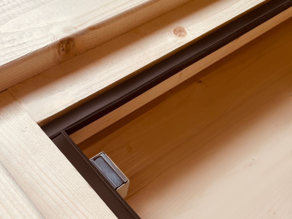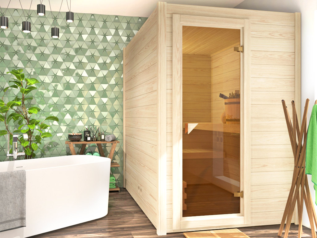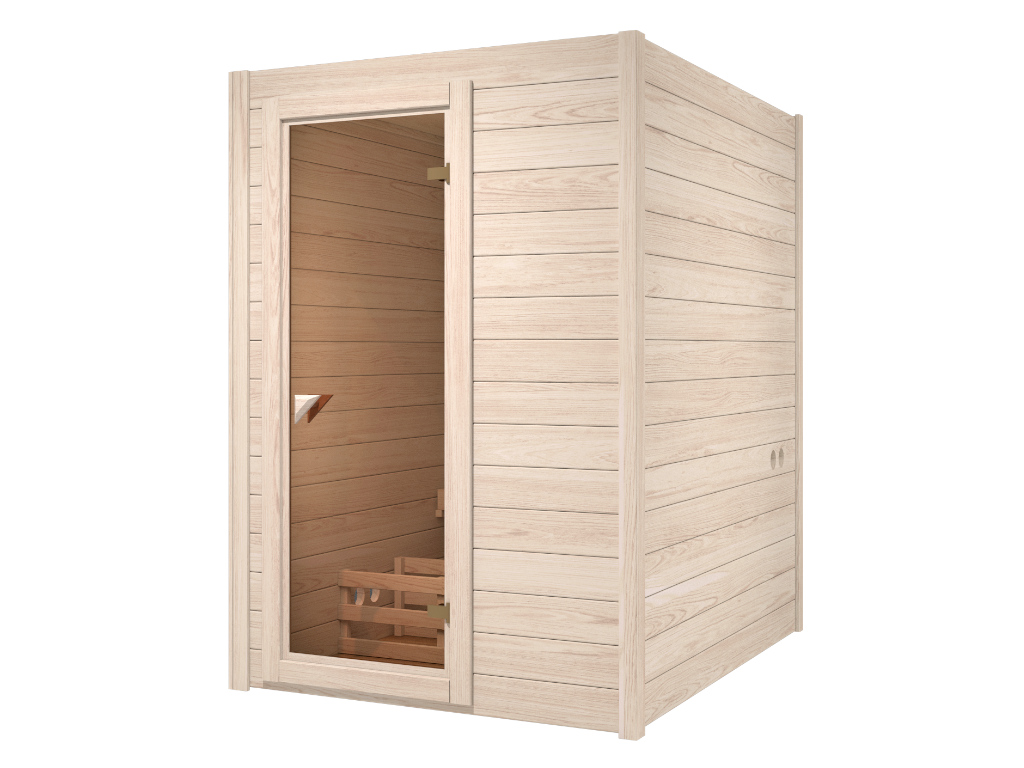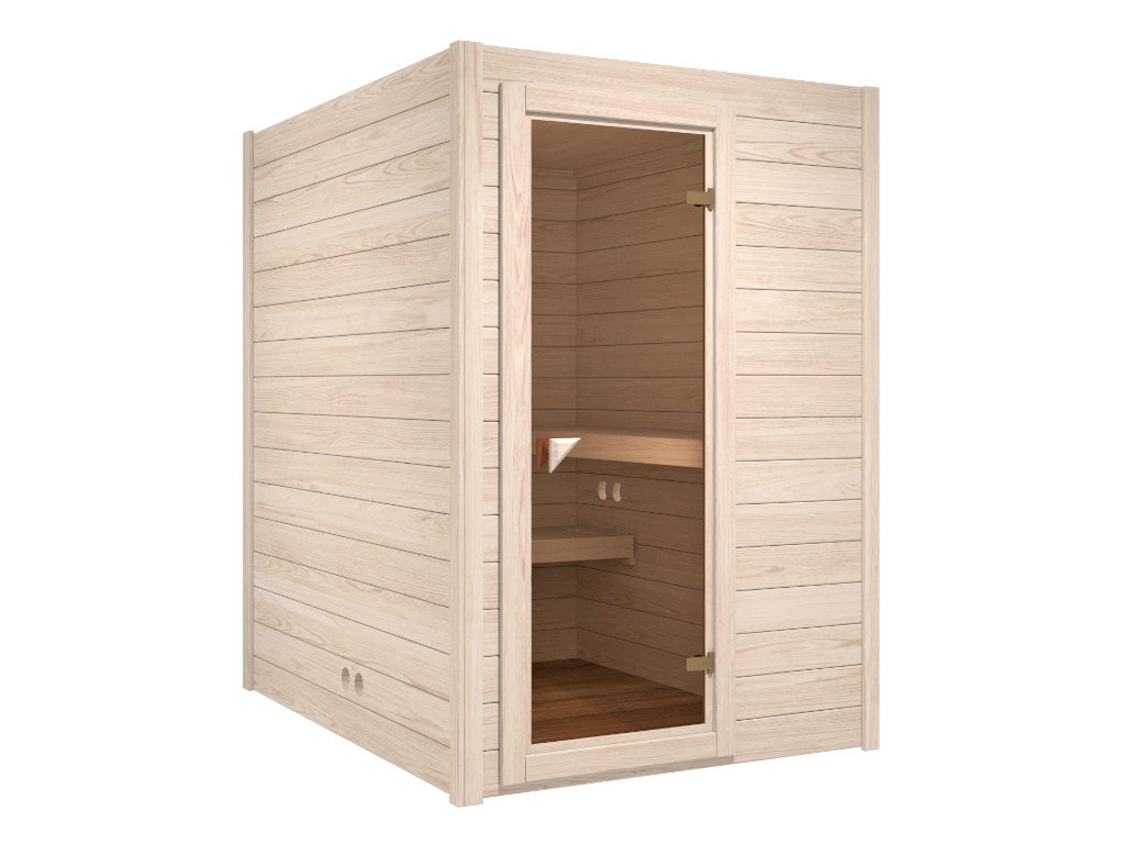 De massieve balken van Scandinavisch sparrenhout fungeren als natuurlijke isolatie. Vurenhout is het ideale hout voor een sauna en is grotendeels vrij van knoesten en hars en heeft een laag risico op splinters. Door de goede warmteopslagcapaciteit worden de hoge temperaturen lang vastgehouden en gedoseerd afgegeven. De volledig natuurlijke beleving van een massief houten sauna wordt gecompleteerd door de eigen harsen en essentiële oliën van het hout, die een typische houtgeur afgeven.