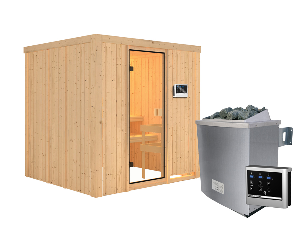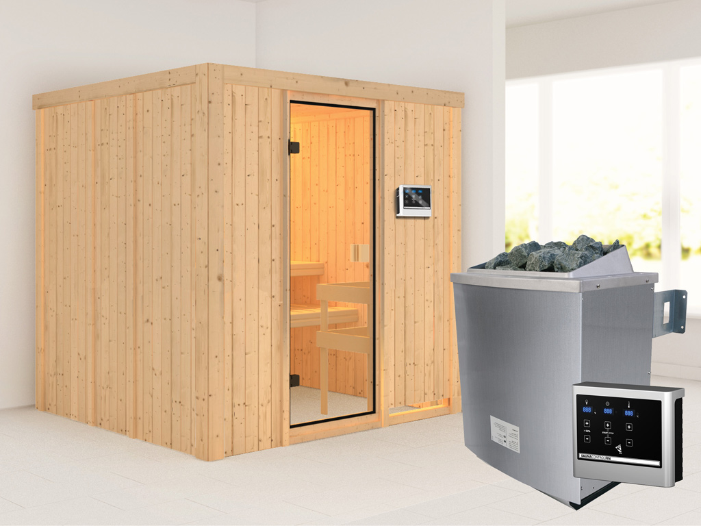 Elementensauna 68 mm Celine 2 SPARSET incl. 9 kW saunakachel en extra bedieningselement
