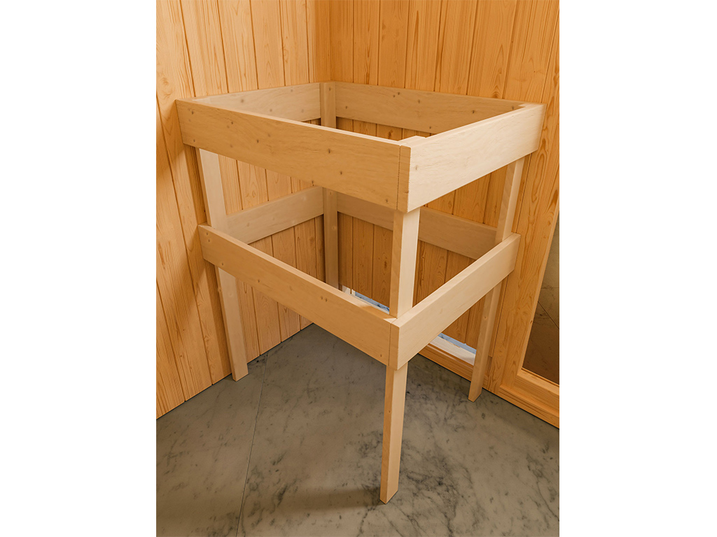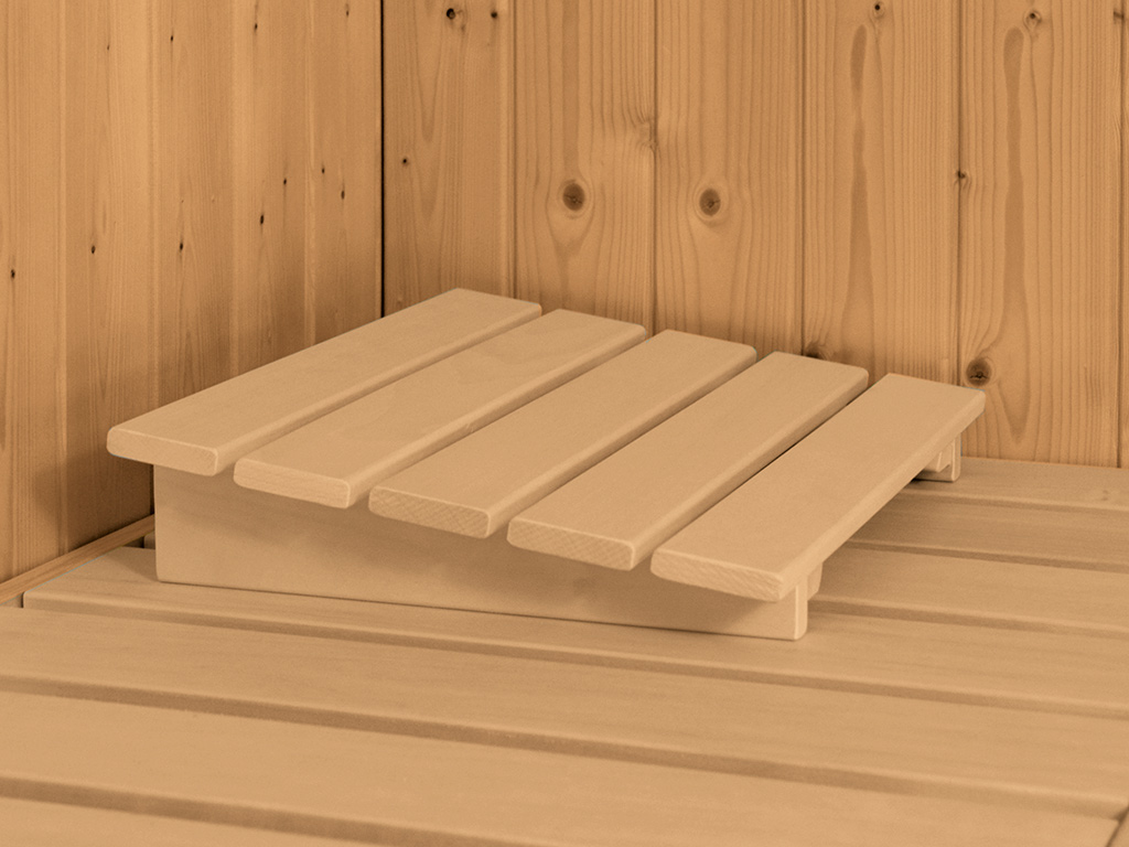 - Saunabedden: De sauna-ervaring is bijzonder comfortabel op 3 ligstoelen. De volgende saunabanken worden meegeleverd: 2 ligbanken, elk ca. 55 cm breed