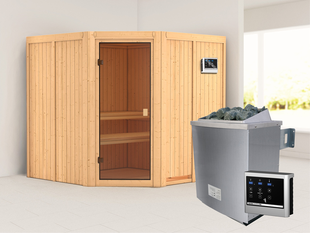 Elementensauna 68 mm Celine 3 SPARSET incl. 9 kW saunakachel en extra bedieningselement