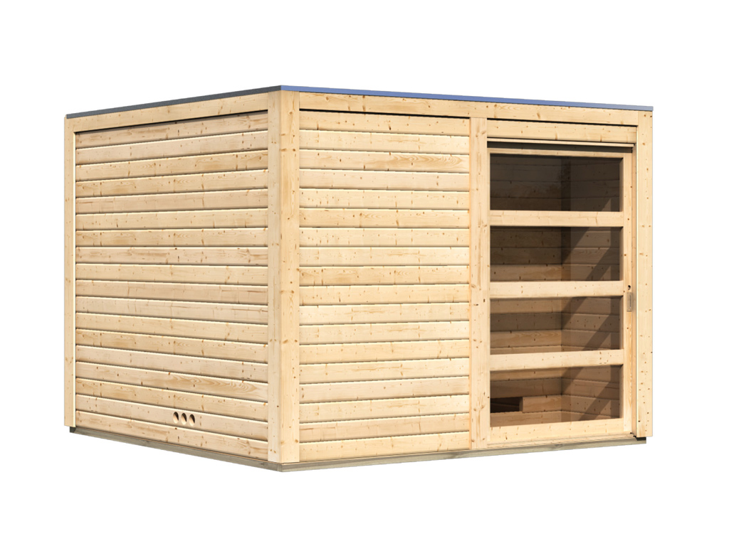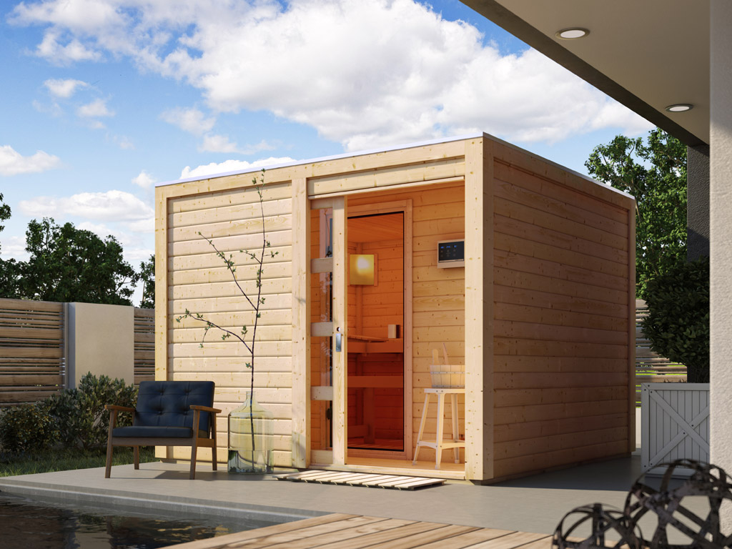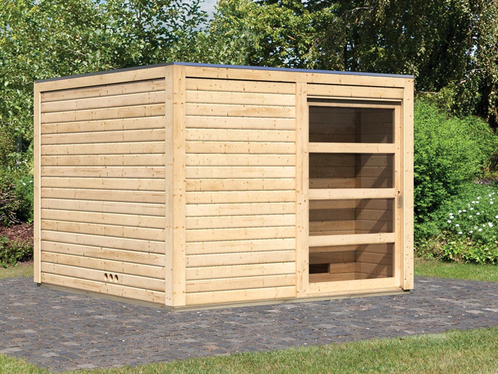 De wellness-oase voor uw tuin - Het saunahuis met handige voorruimte en comfortabele schuifdeur