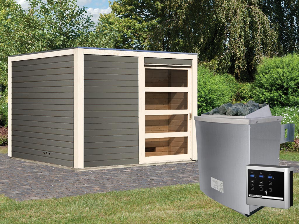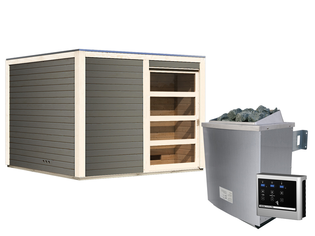 Saunahaus Cuben 38 mm terragrijs incl. 9 kW saunakachel ext. besturing