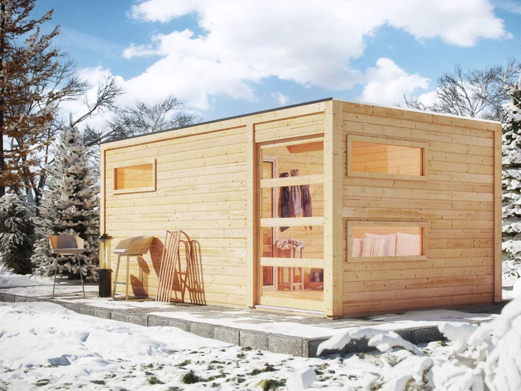 Het saunahuis biedt voldoende ruimte voor gezamenlijk saunagebruik en ontspanning in je eigen tuin. Geniet gewoon altijd van het pure wellnessgevoel thuis in een privéomgeving. De schuifdeur en de ramen laten veel licht naar binnen.