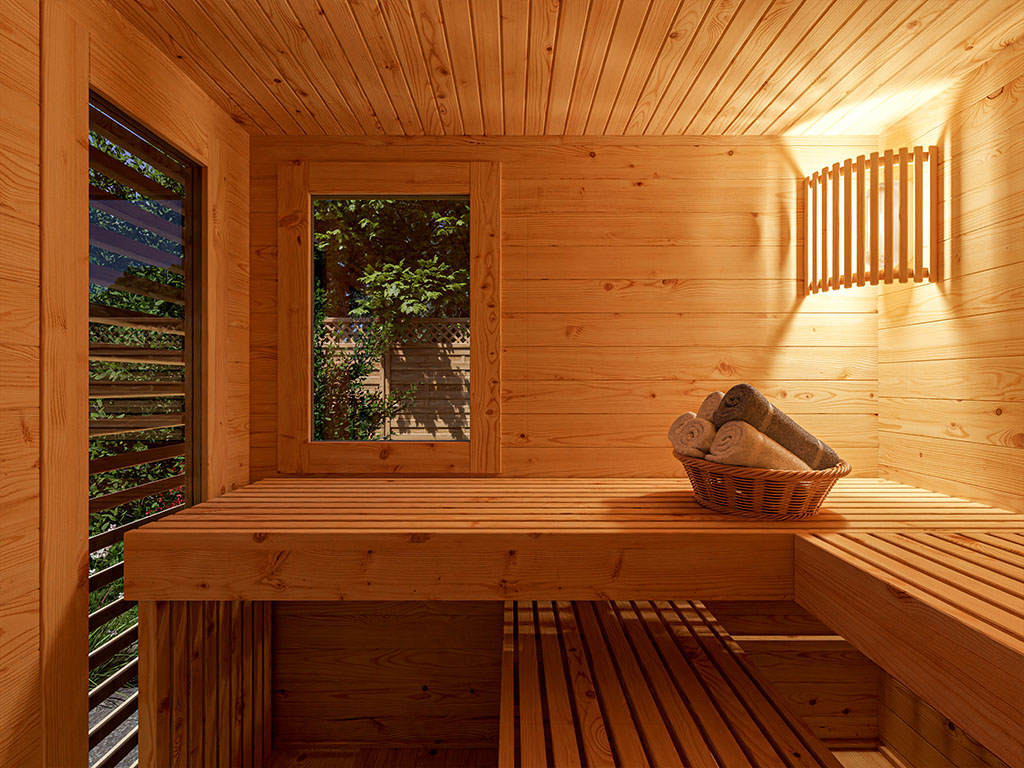 Grond van houtspar: voor een aangename verschijning binnen en buiten de sauna.