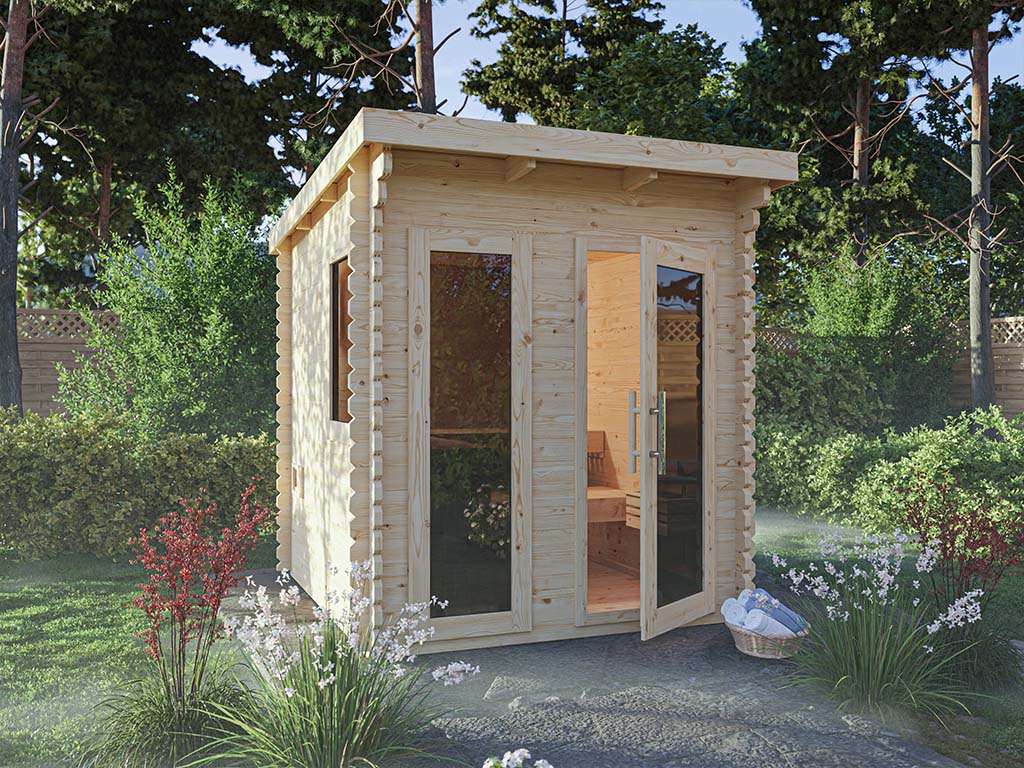 Saunahuis blokhut Layla 40 mm met grafiet glazen deur onbehandeld