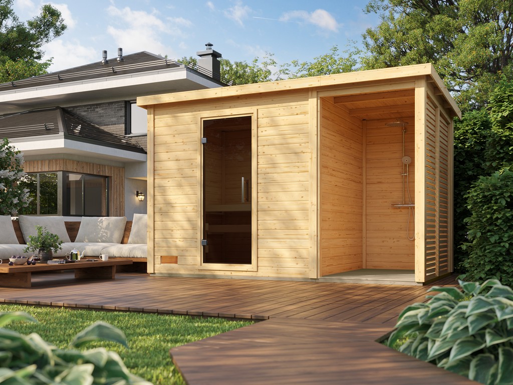 Saunahuis Lene 3 SPARSET incl. 9 kW-saunaoven met externe bediening