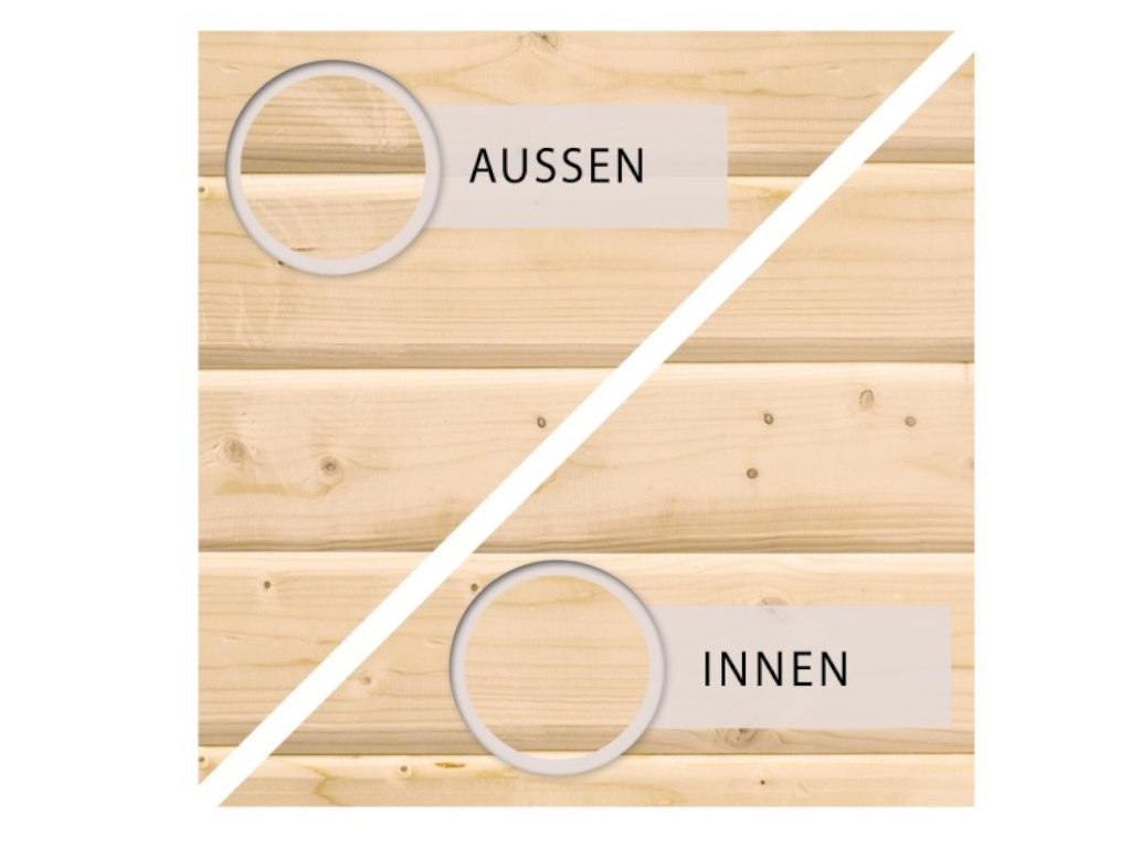 De drie stabiele banken van espenhout verhogen het comfort in deze saunahut. Daarnaast zijn een fornuisbeschermrooster van massief dennenhout en een massieve houten vloer inbegrepen. De minerale wolisolatie in het saunadak zorgt bovendien voor een laag energieverbruik. Inclusief montagehandleiding.