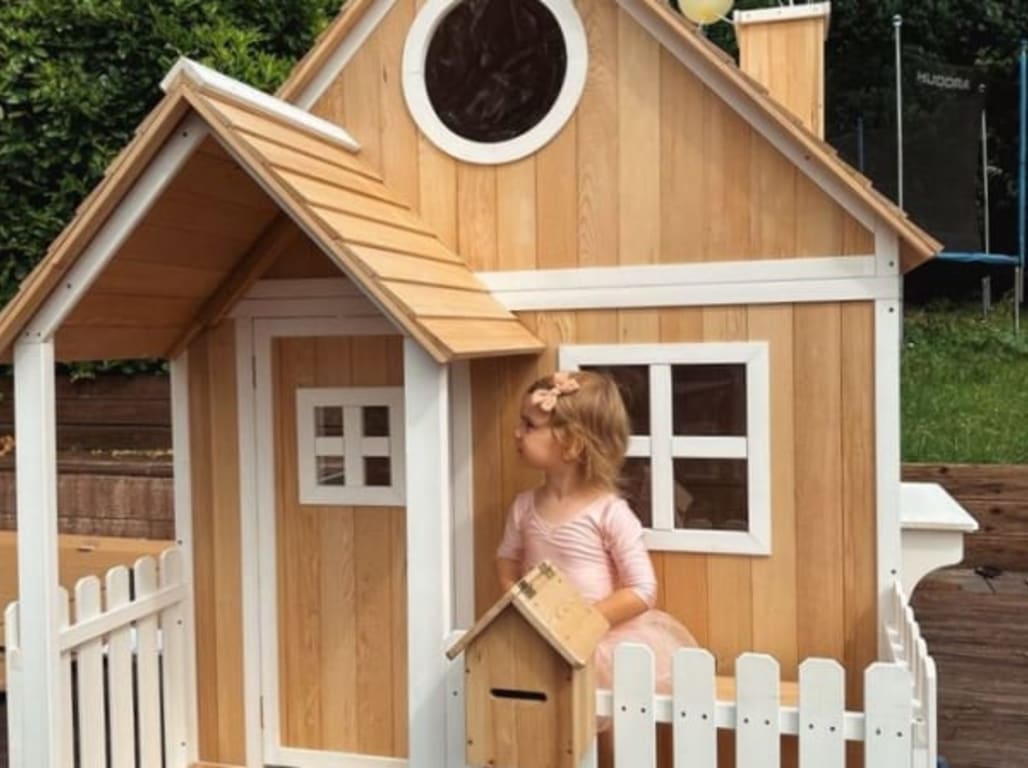 Dit speelhuisje biedt uw kinderen hun eigen kleine huis, waar ze fantasierijk kunnen spelen. Het speelhuisje wordt geleverd incl. veranda met brievenbus en verkoopbalie met zitbank – perfect voor rollenspellen zoals winkeltje spelen of postbode. - Eenvoudige en snelle montage
