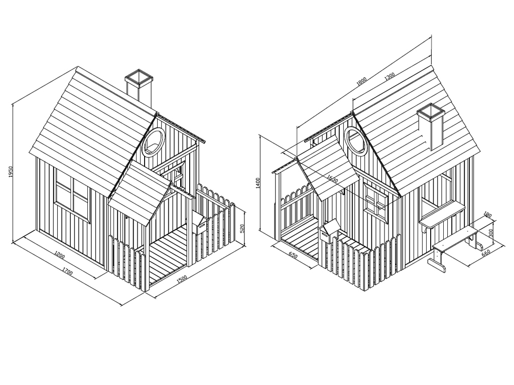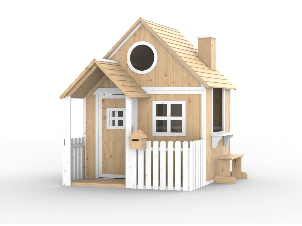 | Leveringsomvang: | Speelhuis Finn, verkoopraam, zitbank, brievenbus, veranda, gedetailleerde montagehandleiding |