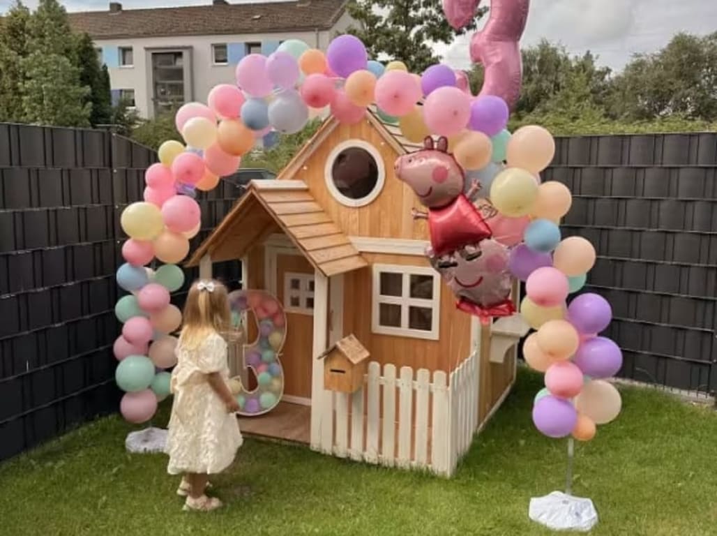 Dit houten speelhuisje wordt geleverd met een enkele deur en 3 ramen en zorgt voor uren buitenspeelgoed-plezier voor kinderen.