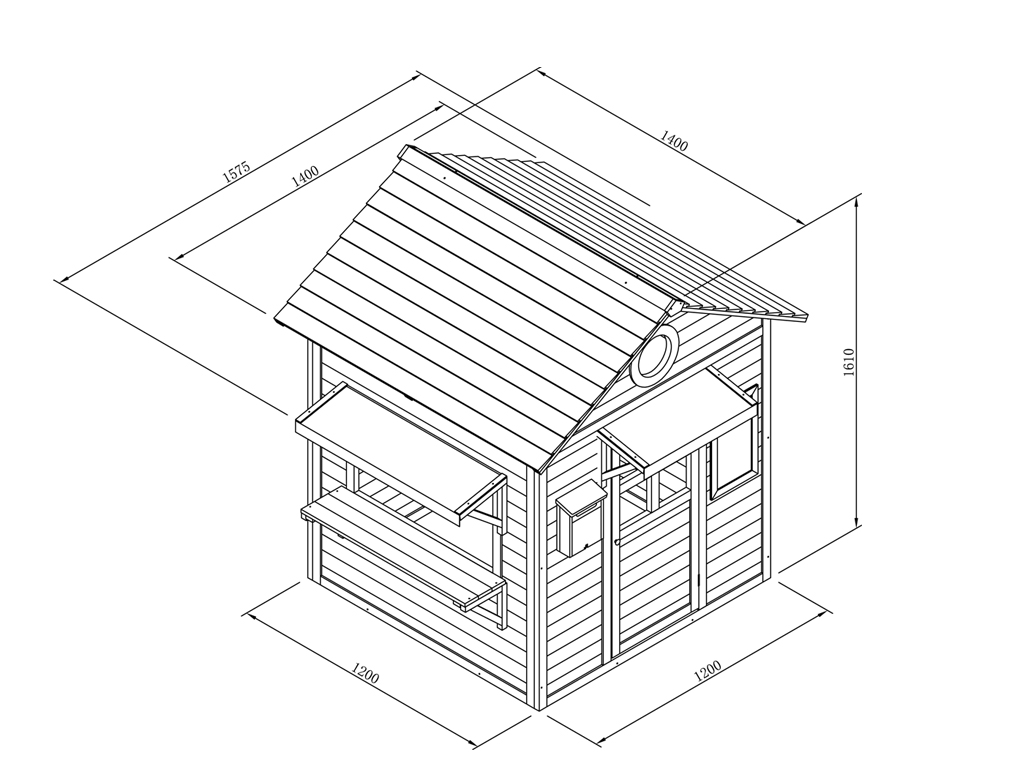 | Leveringsomvang: | Speelhuis Kim, verkoopbalie, krijtbord, brievenbus, foliedaken, gedetailleerde montagehandleiding |
