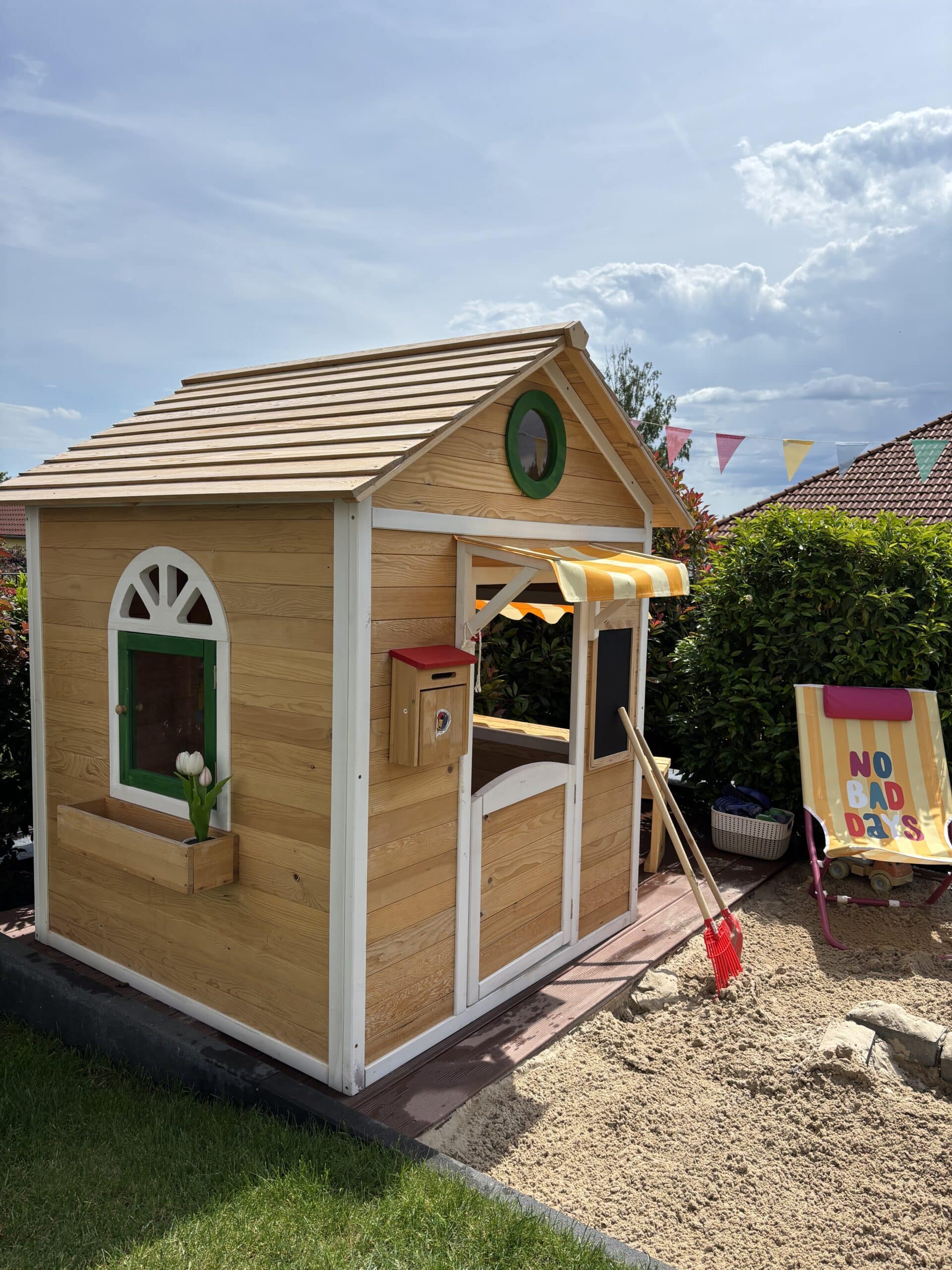 Het is een heel leuk speelhuis. De constructie verliep snel en ongecompliceerd. Helaas is het hout heel erg zacht, de bloembak bleef niet in de muur zitten en brak uit toen mijn zoon tijdens het spelen uit het raam leunde. Verzending was ok, een betrouwbaardere rederij zou wenselijk zijn.