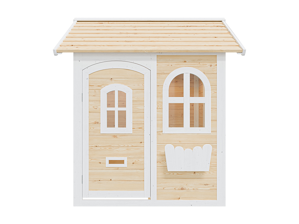 Het Melina speelhuis heeft een deur met een vast raam en biedt nog een vast raam aan de voorkant. De twee zijramen kunnen naar buiten worden geopend. Alle ramen zijn voorzien van een kunstglas inzetstuk. De brievenbussleuf in de deur en een bloembak dragen bij aan het huiselijke karakter. - Stevige basisconstructie