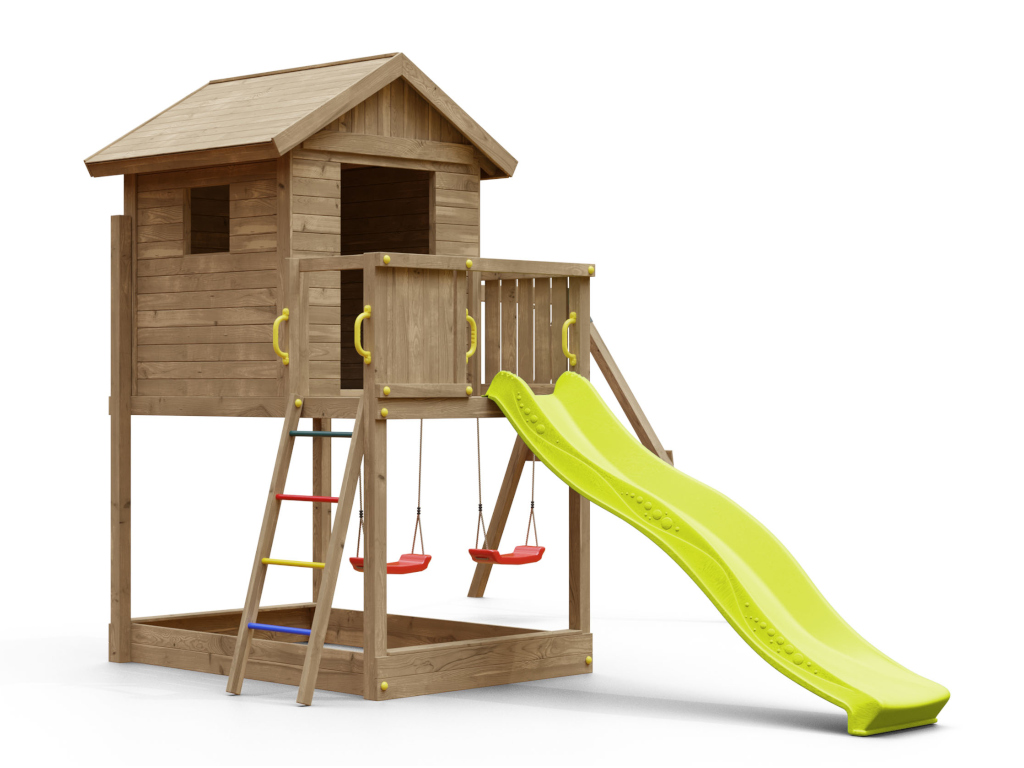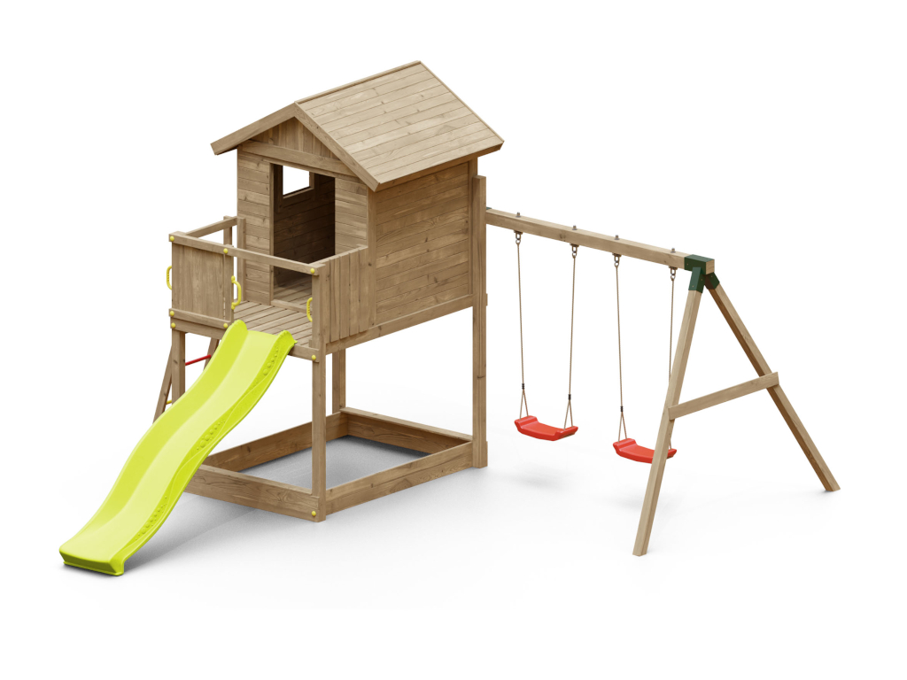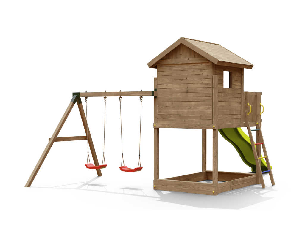 Speeltoren speelhuisje op palen Galaxy S incl. dubbele schommel onder druk geïmpregneerd + glijbaan