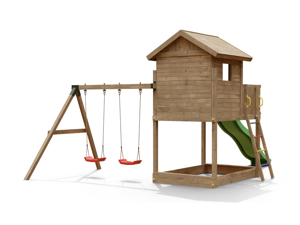 Speeltoren speelhuisje op palen Galaxy S incl. dubbele schommel onder druk geïmpregneerd + glijbaan