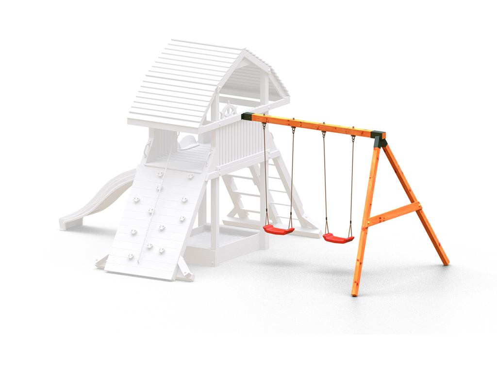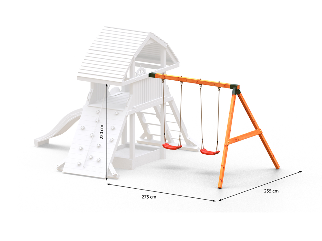 Als ideale uitbreiding van je Fungoo speeltoren "Giant" bevat deze aanbouwmodule een dubbele schommel met bijpassende rode schommelzitjes. Voor nog meer plezier voor je kinderen. De basisconstructie van de schommelaanbouw bestaat uit een 9 x 9 cm sterke schommelpaal en 7 x 7 cm sterke palen van robuust naaldhout. De aanbouwmodule wordt reeds geschilderd in teak geleverd. - Gekleurd voorbehandeld