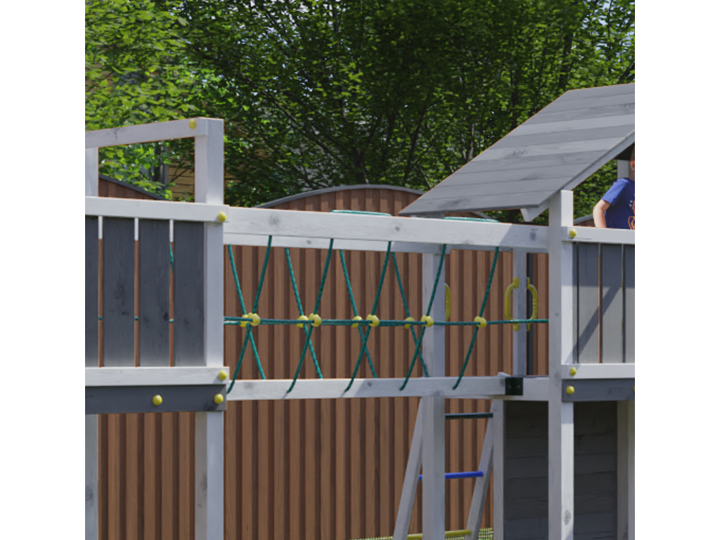 De speeltorenvariant "Bridge" is uitgerust met een brugmodule die de speeltoren met een tweede platform verbindt en zo voor nog meer klimplezier zorgt en tegelijkertijd het evenwichtsgevoel traint.
