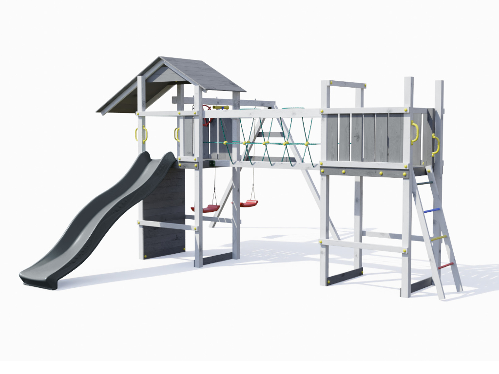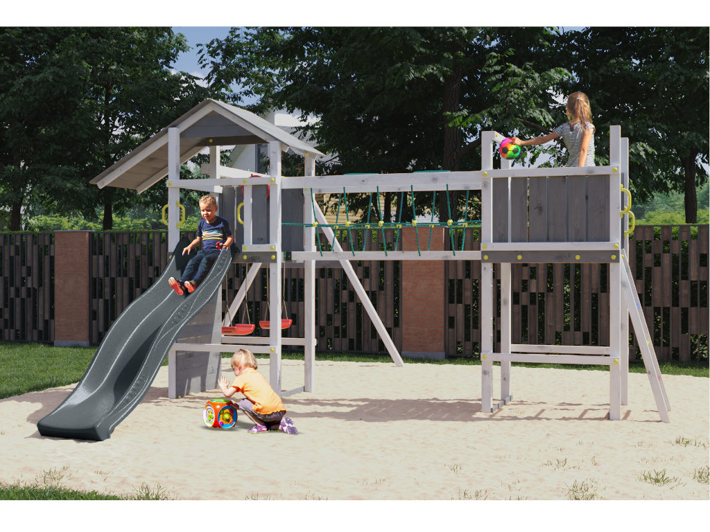 Speeltoren Smart 5 Bridge grijs-wit incl. glijbaan grijs