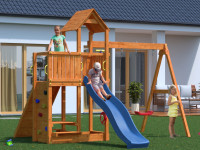 | Leveringsomvang: | Speedy KDI speeltoren, dak van zeil, platformverlenging, dubbele schommel, 2x schommelzitje of 1x nestschommel (afhankelijk van keuze), 4 schommelhaken, 2 handgrepen, zandbak, ladder, klimwand, klimstenen, 1x telescoop, 1x glijbaan |